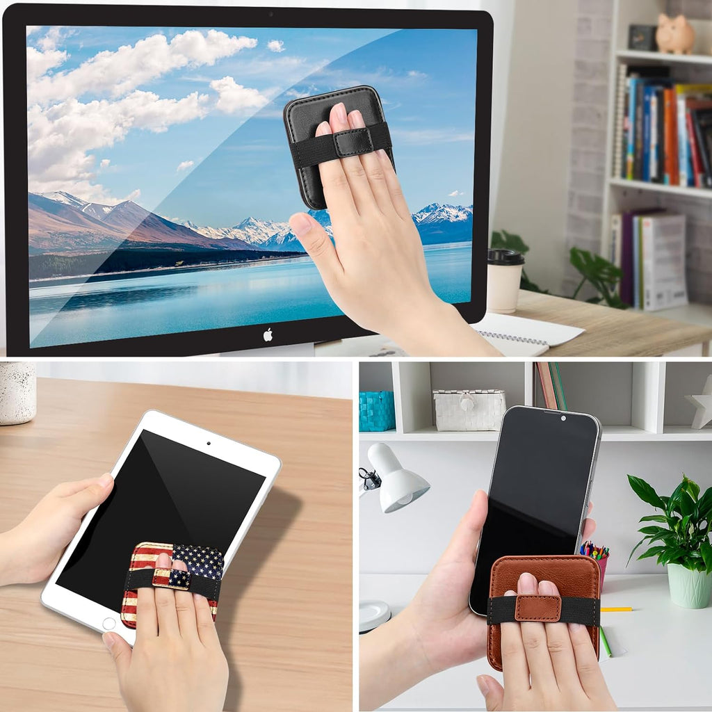 Suitable for all touch screen devices, including iPad Air, iPad Pro, iPad Mini, MacBook, Samsung Tablets, Kindles, iPhone Max/XR/XS/X/SE, Samsung S9/S9+/S10/S10+/Note 10/Note 10+, as well as Tesla touch screens, TV screens, etc. The surface of this screen cleaning pad is made of soft microfiber cloth, which can effectively wipe away fingerprints, dust, water stains, and other residues on the surface of the screen and can be reused without scratching the screen. Chemical free. The front side is made of high-quality PU leather with elastic straps to ensure that it will not fall off when wiping the screen. Each size is 3.15 * 3.15 * 0.32 inches, suitable for palm size, easy to carry, and can be placed in the pocket, bag, car, or home with the use of the take. Package includes: Four screen cleaning soft cloth pads (Brown+Black+Sand Wave+US Flag).