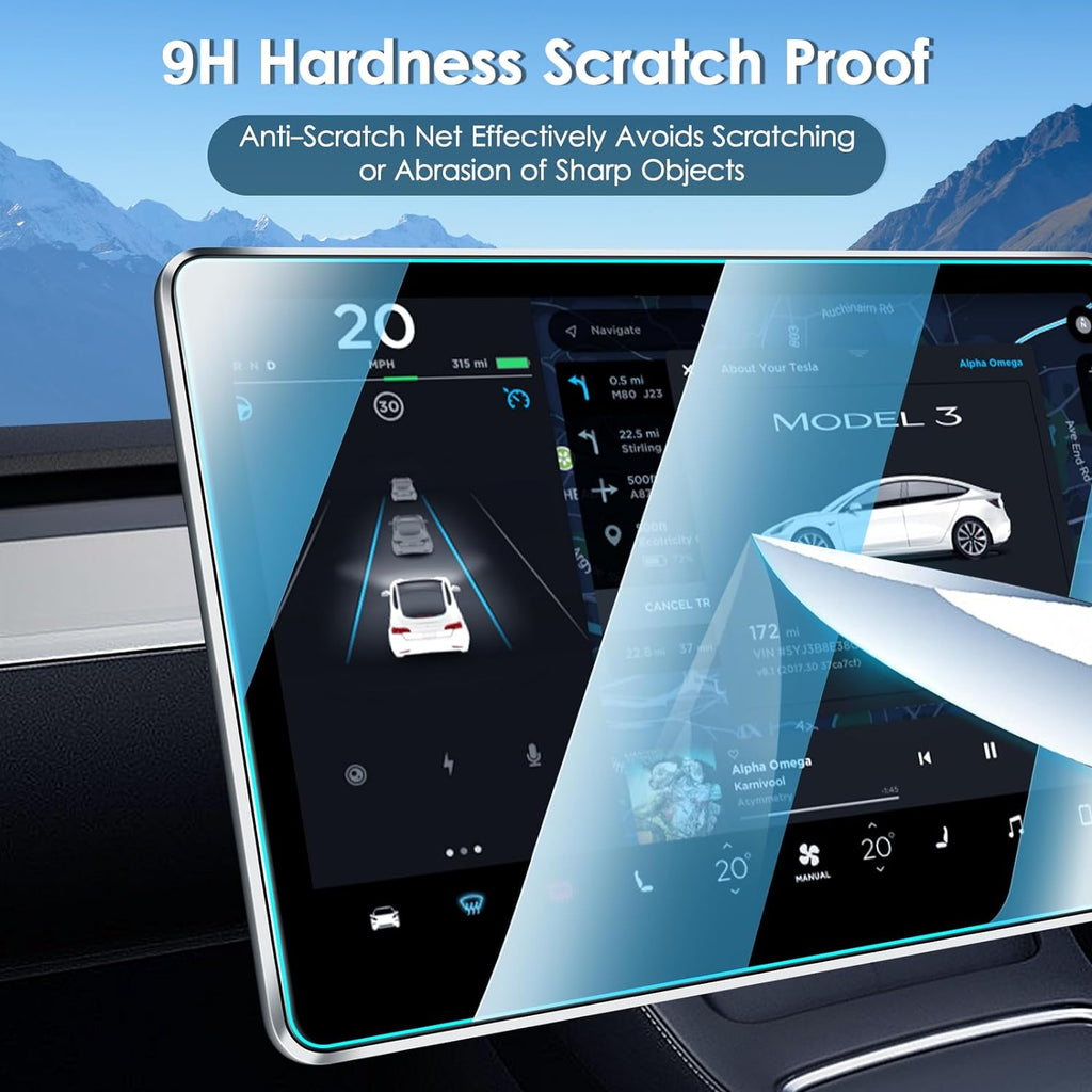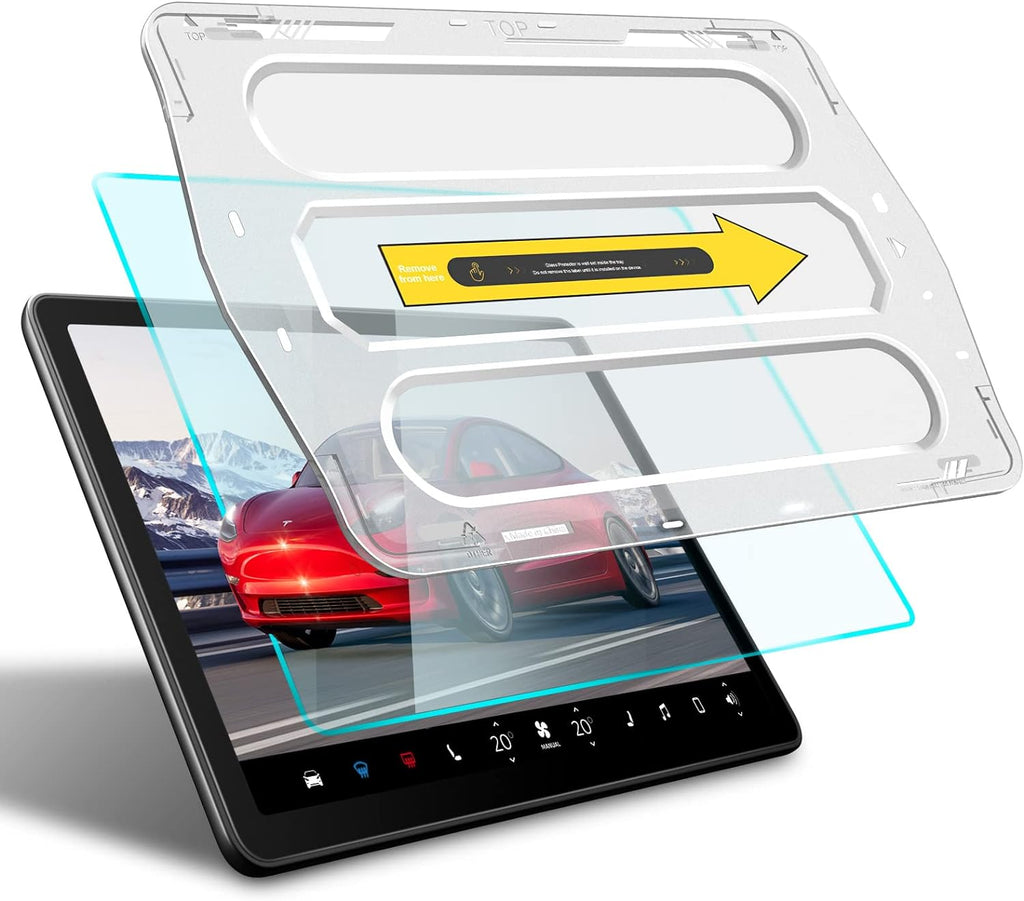 ⭐【 Compatibility Model 】This Tempered Glass Screen Protector Accessories with Auto-alignment Installation Accessories is compatible with Model 3 and Model Y Dashboard Touchscreen. ⭐【lnstallation Made Simple】Auto-alignment installation kit makes tempered glass application quick,Dust-free, fingerprint-free, bubble free, one-push super easily installation. ⭐【Ultra-Thin and Curved】Made of 0.33mm tempered glass, maintaining 99.99% response sensitivity and touch, ensures quick app launch, smooth games and video playing, bringing you a perfect touch experience. ⭐【High-Definition Function】The surface of the protective film is treated with a coating, which is very smooth, effectively reduce fingerprints from sweat and grease, making the screen very easy to clean. 99.99% optical-grade light transmittance, enhancing the visibility of the screen. ⭐【Durability and Hardness】9H Hardness Scratch Proof provides strong protector and Durability Anti-Scratch Net Effectively Avoids Scratching or Abrasion of Sharp Objects