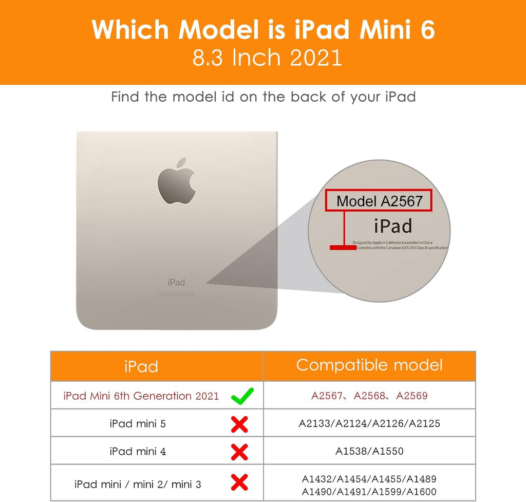 ⭐ Compatibility - Designed for New iPad Mini 6th Generation 8.3 Inch(Model Number: A2567/A2568/A2569).Please Check Back Bottom of Your iPad to Find the Model Number. ⭐ Functional Support - Pencil Holder and Two Kickstand Angle: Viewing and Typing Model Stand by in Your Daily Use, Including Work and Entertainment.(iPad Pencil is NOT included) ⭐ Built-in Screen Protector - Protect the Screen from Scratching and Crashing.( Kind Note: Please remove the white film that sticks on the screen protector for better viewing experience) ⭐ Full Protection - Shock-resistant, Dual-layer Case with Solid Polycarbonate Backplate Provides Protection against Accidental Drops, Bumps ⭐ Lifetime Warranty - DTTO Offers Lifetime Free Replacement for Your iPad Mini 6 Case (Needs to be activated within 30 days of purchasing). Your Satisfaction Is Our Top Concern.