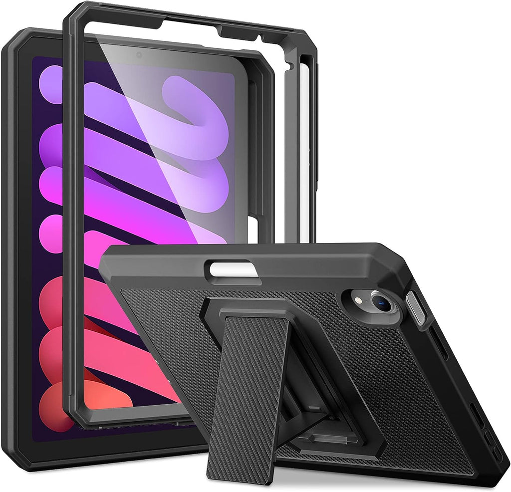 DTTO Shockproof Case for iPad Mini 6 2021, Dual Layer Full Body Tough Rugged Stand Cover Case, Built-in Screen Protector and Pencil Holder for iPad Mini 6 8.3 inch 2021 Release, Deep Black