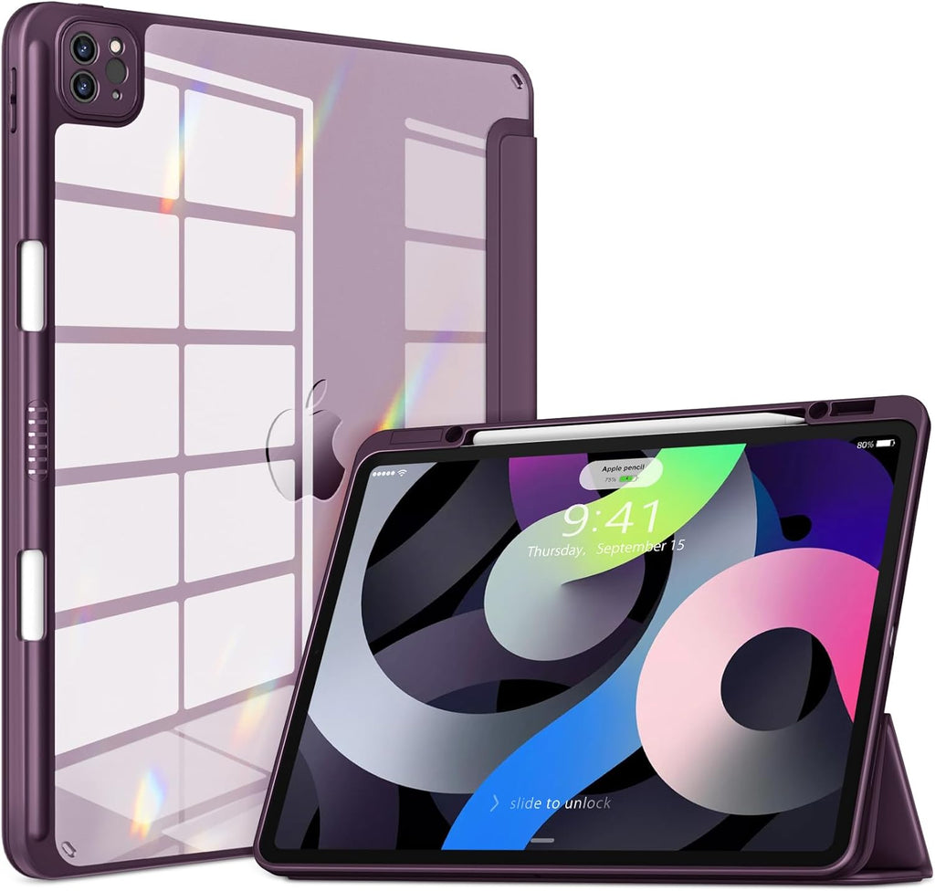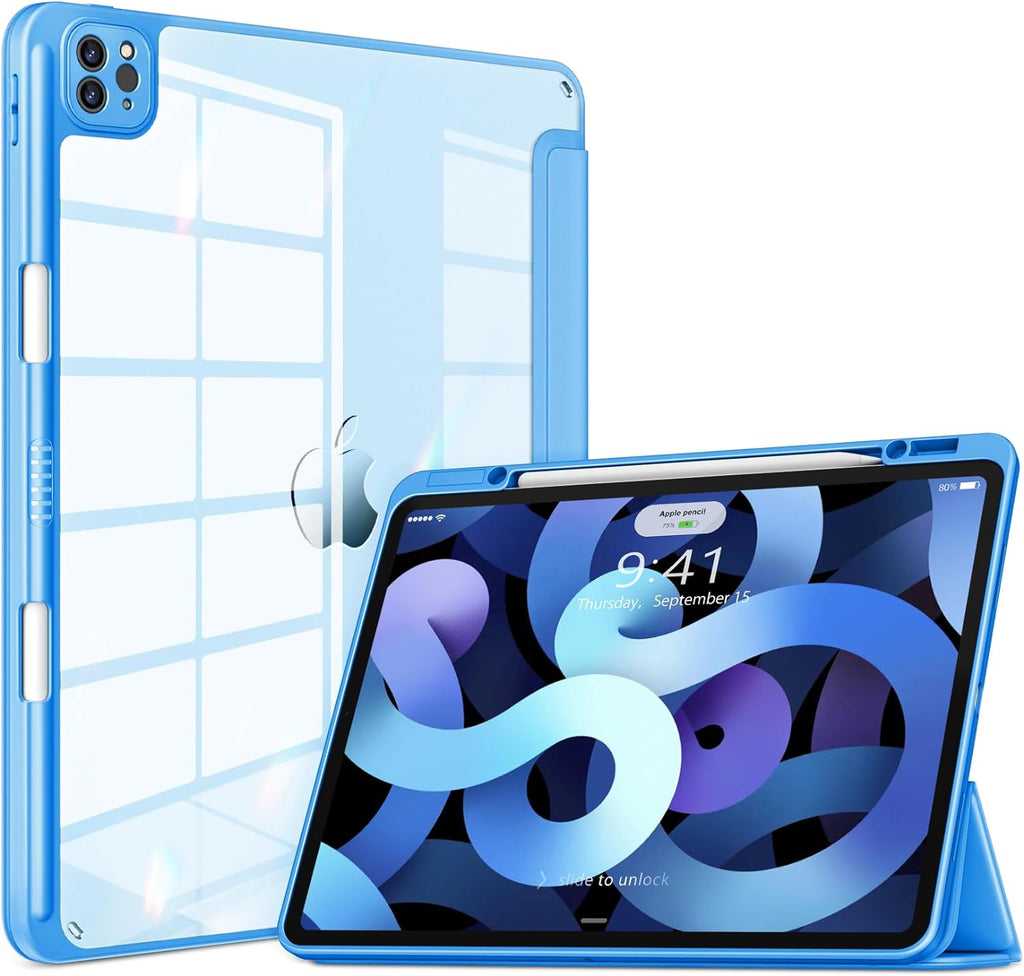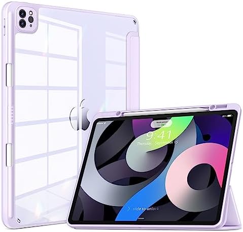 DTTOCASE for iPad Pro 12.9 Case 6th/5th/4th/3rd Generation 2022/2021/2020/2018,Clear Shockproof Back Cover[Built-in Pencil Holder,Auto Sleep/Wake,Camera Protection] for 12.9 inch iPad Pro-Blue Purple