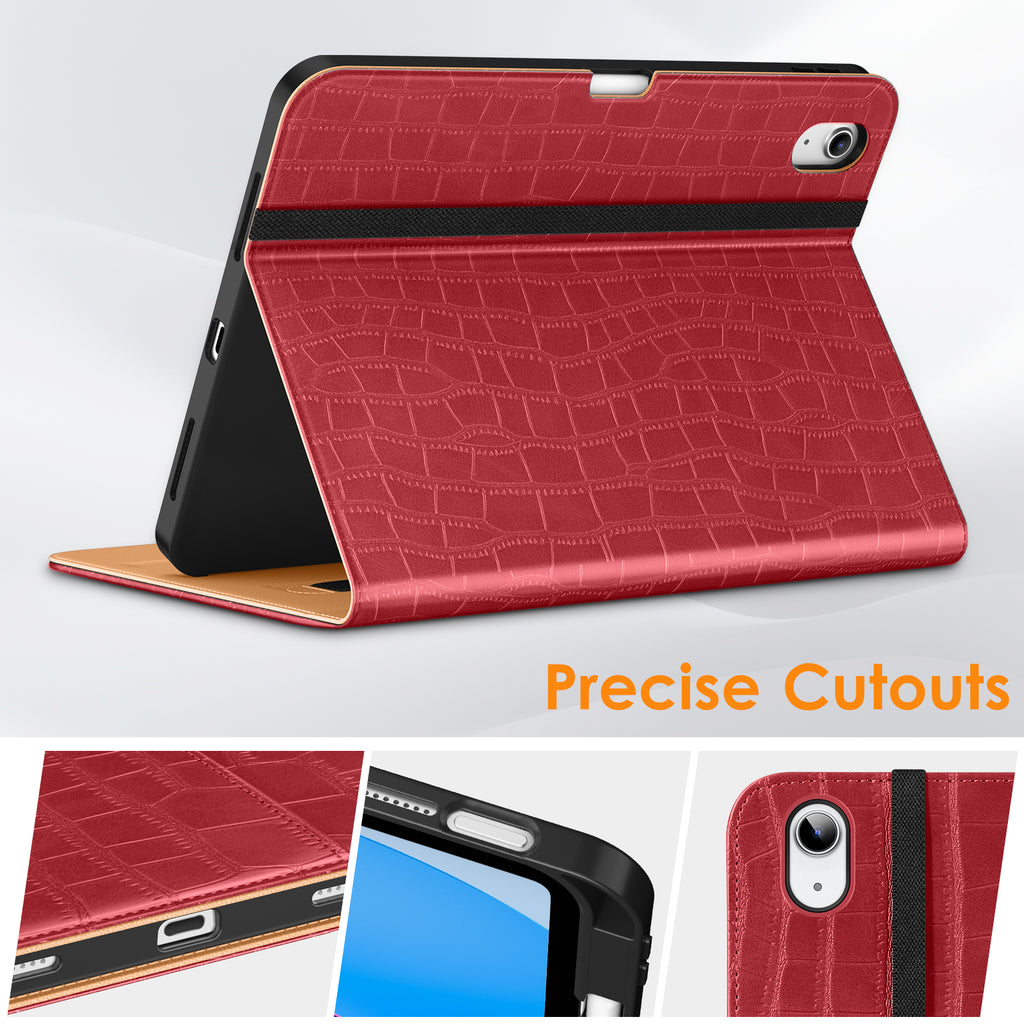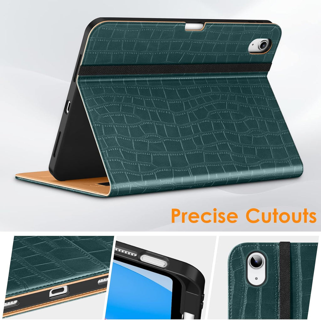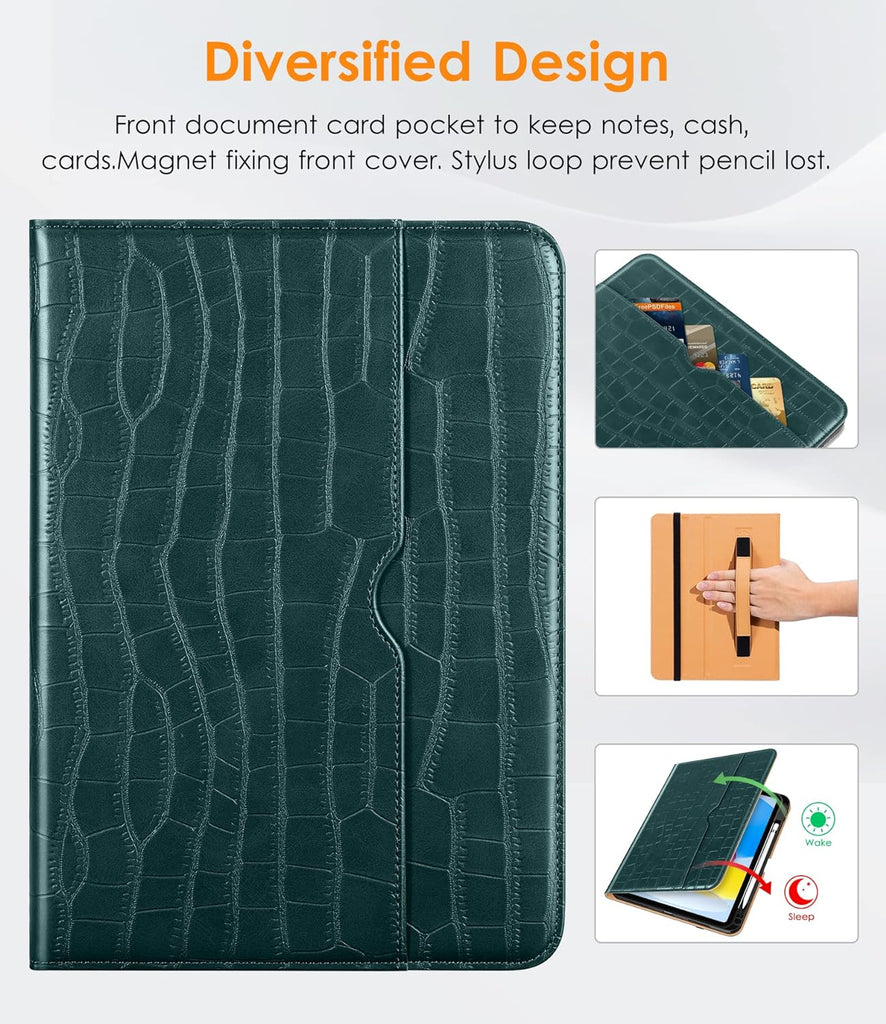 ⭐【Compatibility Model】This Crocodile Leather Case is compatible with 10.9 inch iPad 10th generation Model Number:A2757/A2777/A2696 (2022 released), Not compatible with any other iPad devices. ⭐【FASHION AND PROTECTION】Offers the difference by full protection Design, alligator leather back provides strong support, anti-fingerprint and anti-scratch. Soft TPU frame protects your iPad from shocks, drops and shocks. Hand strap helps you secure the front cover ⭐【Multiple Function】This iPad case is a Built-in hand strap and Pencil Holder, that supports Touch ID, Camera Protection, and Two stand Angle. Comes with a front ID card pocket to store notes, cash and cards like a wallet ⭐【ECO FRIENDLY】: Crocodile leather details make the case luxurious looking. The case is made from high quality 100% eco-friendly vegan leather, PU leather is highly anti-scratch, tear-resistant, durable, and easy to clean, simply just wipe it with water to keep this case looking new. ⭐【Lifetime Warranty 】We Offers Lifetime Free Replacement for Your IPad Case. (Needs to be activated within 30 days of purchasing) Your Satisfaction Is Our Top Conc