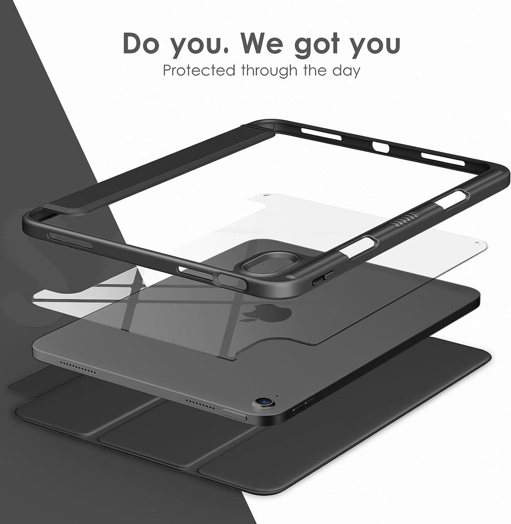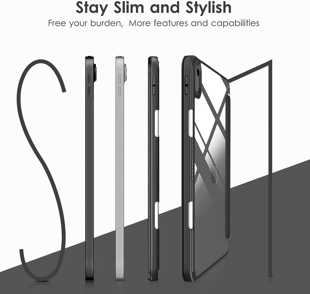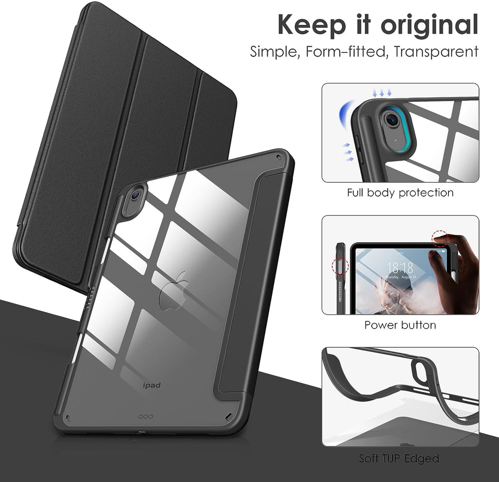 DTTOCASE iPad 10th Generation Case 2022, iPad 10.9 Inch Case with Clear Transparent Back and TPU Shockproof Frame Cover [Built-in Pencil Holder, Support Auto Sleep/Wake] -Black