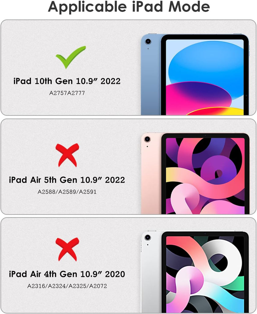 ⭐【Compatibility Model】This Clear Case is compatible with 10.9 inch iPad 10th generation Model Number:A2757/A2777/A2696 (2022 released), Not compatible with any other iPad devices. ⭐【Three-in-One Cover】Offers the difference by full protection Design, Front PU leather cover, and soft TPU frame protects your iPad from shocks, drops, and impacts. Hard crystal clear PC back provides strong support and the place for DIY. ⭐【 Slim and Stylish 】Precise cutouts for all buttons and ports with just 0.05-inch Thickness, Minimalist shape, crystal clear back, and beautiful colors bring you to ease and comfort at any time. ⭐【Multiple Function】This iPad case has Pencil Holder to support Touch ID, Camera Protection, built-in magnets design that supports Auto Wake/Sleep, Tri-fold front cover that gives you 2 different view angles. ⭐【Lifetime Warranty 】DTTO Offers Lifetime Free Replacement for Your IPad Case. (Needs to be activated within 30 days of purchasing) Your Satisfaction Is Our Top Concern.