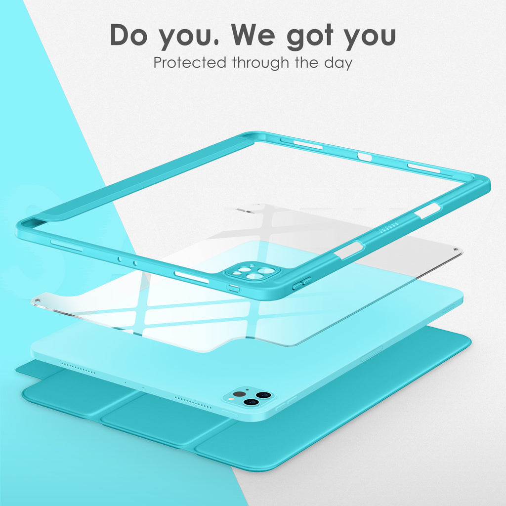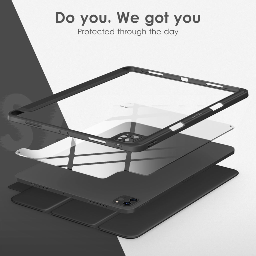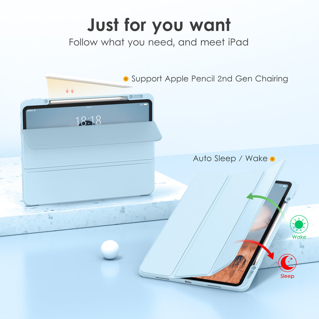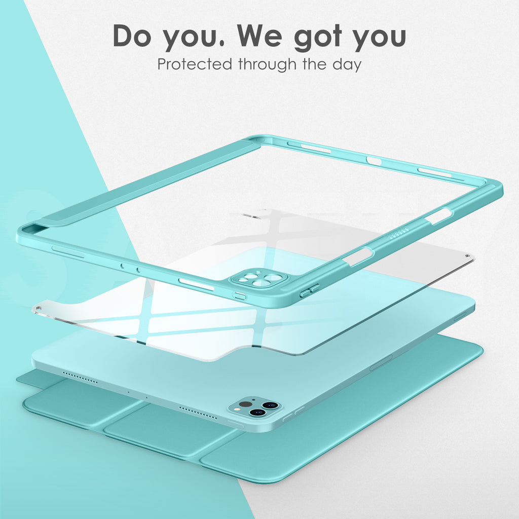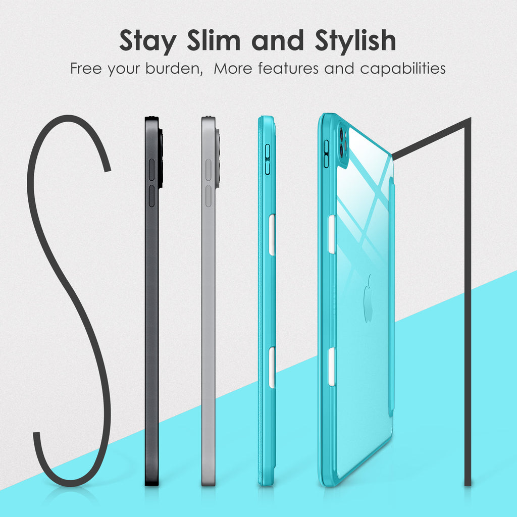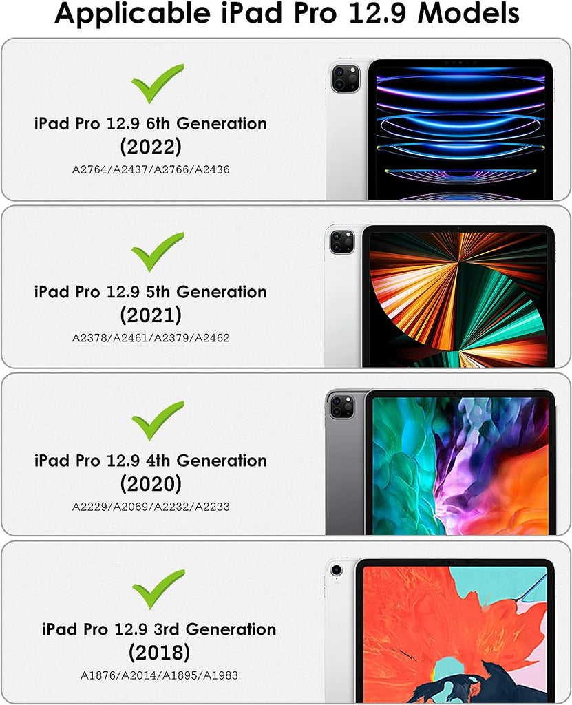 ⭐【Compatibility Model】This Clear Case is compatible with Apple iPad Pro 12.9 inch 6th/ 5th / 4th / 3rd Generation model:A2764/A2437/A2766/A2436/A2378/A2461/A2379/A2462/A2229/A2069/A2232/A2233/A1876/A2014/A1895/A1983(2022/2021/2020/2018 release), Not compatible with any other iPad devices. ⭐【Three-in-One Cover】Offers the difference by full protection Design, Front PU leather cover, and soft TPU frame protects your iPad from shocks, drops, and impacts. Hard crystal clear PC back provides strong support and is the place for DIY. ⭐【 Slim and Stylish 】Precise cutouts for all buttons and ports with just 0.05-inch Thickness, Minimalist shape, crystal clear back, and beautiful colors bring you to ease and comfort at any time. ⭐【Multiple Function】This iPad case has Pencil Holder to support 2nd Gen Pencil wireless charging, Camera Protection cover, built-in magnets design that supports Auto Wake/Sleep, Tri-fold front cover gives you 2 different view angles. ⭐【Lifetime Warranty 】DTTO Offers Lifetime Free Replacement for Your IPad Case. (Needs to be activated within 30 days of purchasing) Your Satisfaction Is Our Top Concern.