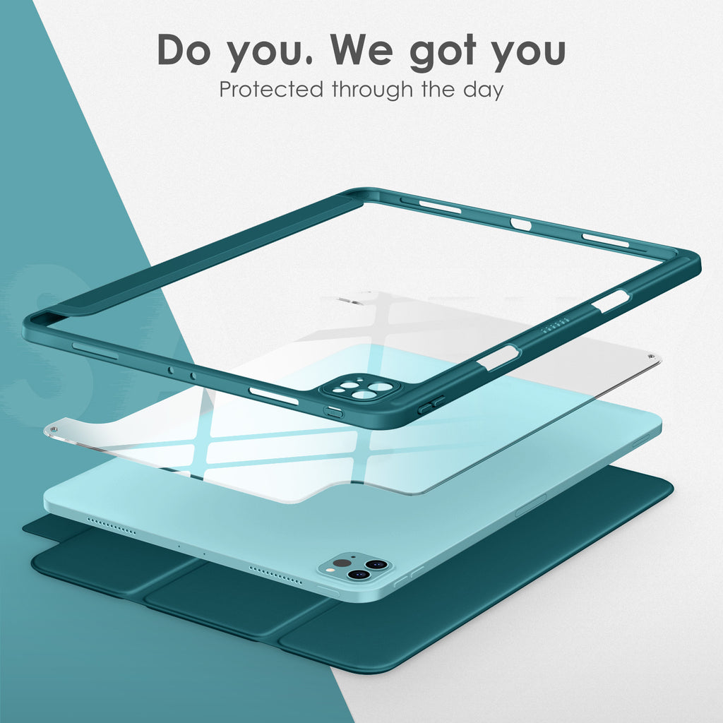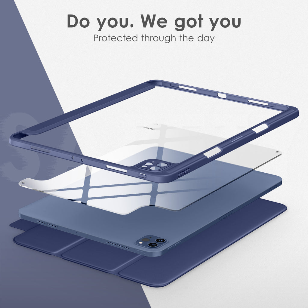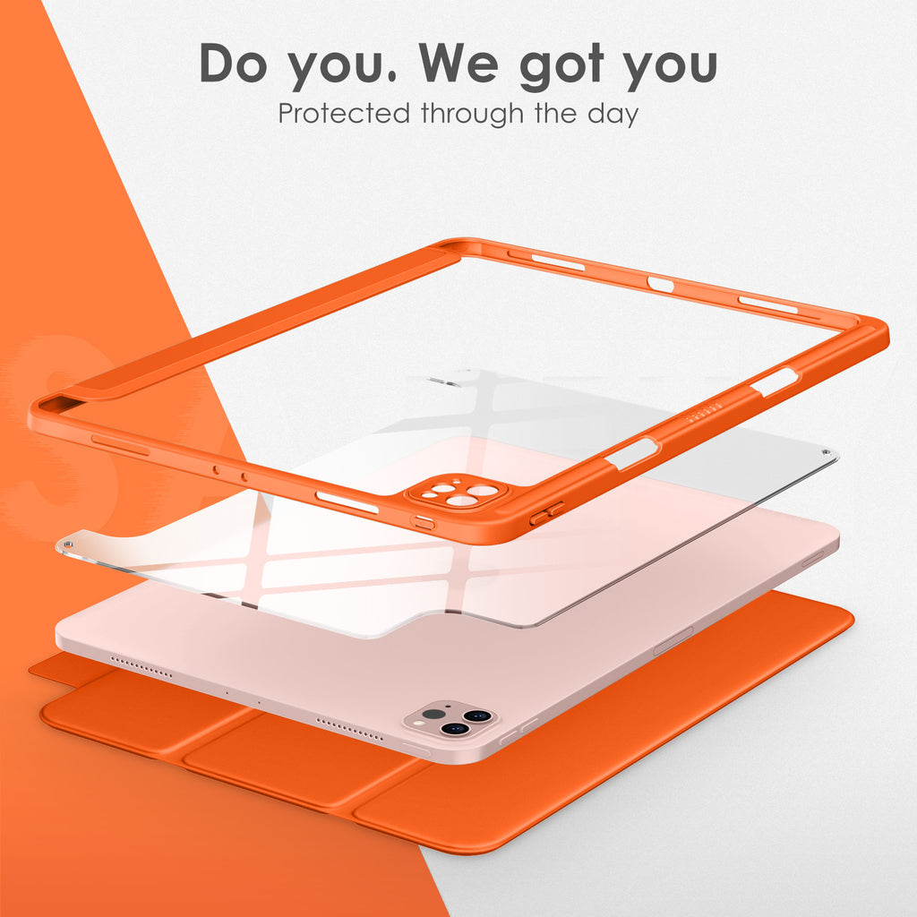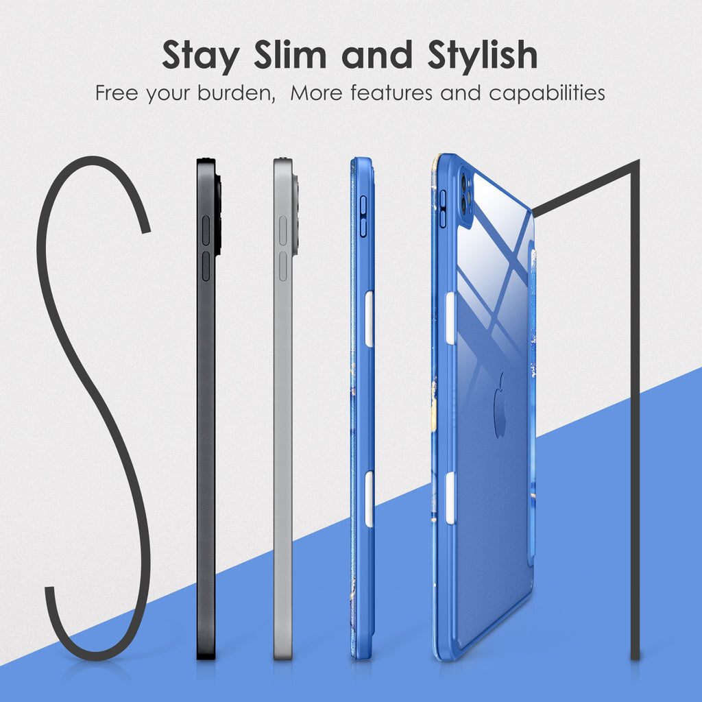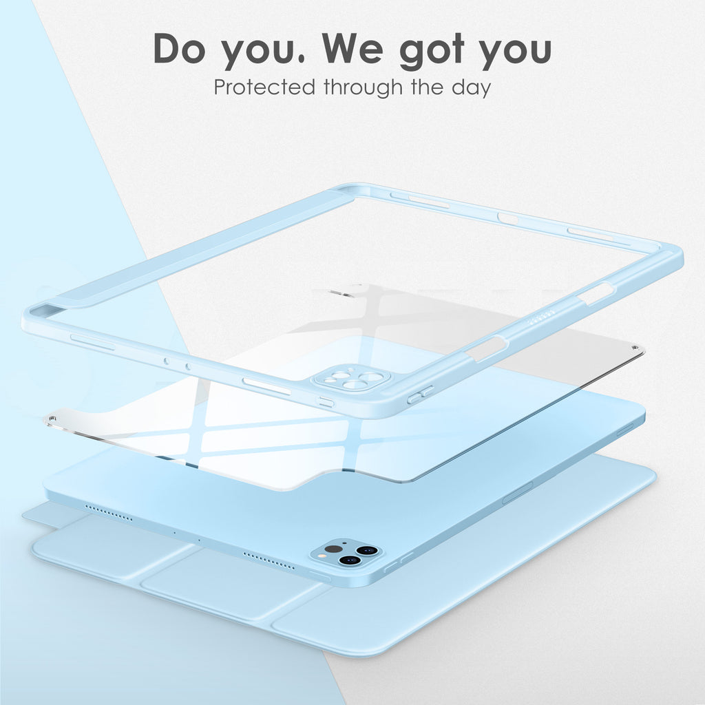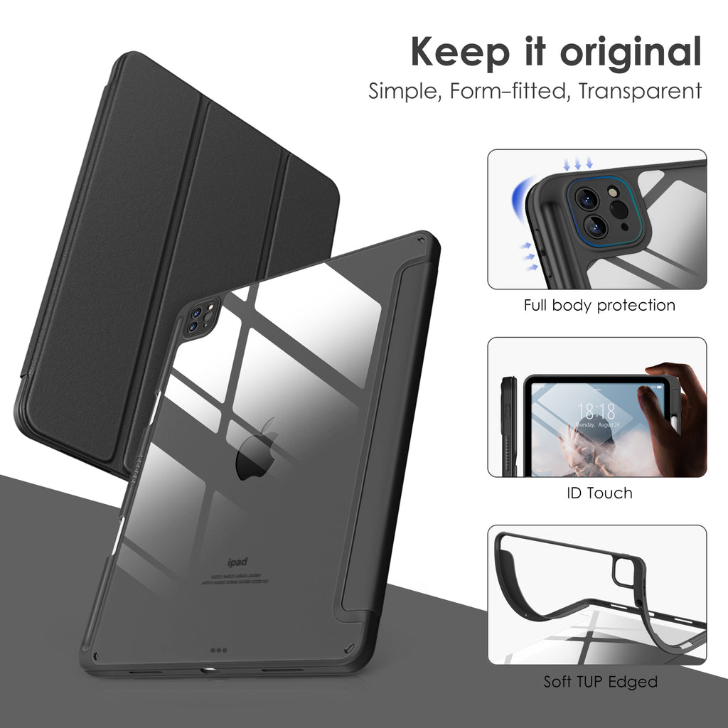 ⭐【Compatibility Model】This Clear Case is compatible with Apple iPad Pro 12.9 inch 6th/ 5th / 4th / 3rd Generation model:A2764/A2437/A2766/A2436/A2378/A2461/A2379/A2462/A2229/A2069/A2232/A2233/A1876/A2014/A1895/A1983(2022/2021/2020/2018 release), Not compatible with any other iPad devices. ⭐【Three-in-One Cover】Offers the difference by full protection Design, Front PU leather cover, and soft TPU frame protects your iPad from shocks, drops, and impacts. Hard crystal clear PC back provides strong support and is the place for DIY. ⭐【 Slim and Stylish 】Precise cutouts for all buttons and ports with just 0.05-inch Thickness, Minimalist shape, crystal clear back, and beautiful colors bring you to ease and comfort at any time. ⭐【Multiple Function】This iPad case has Pencil Holder to support 2nd Gen Pencil wireless charging, Camera Protection cover, built-in magnets design that supports Auto Wake/Sleep, Tri-fold front cover gives you 2 different view angles. ⭐【Lifetime Warranty 】DTTO Offers Lifetime Free Replacement for Your IPad Case. (Needs to be activated within 30 days of purchasing) Your Satisfaction Is Our Top Concern.