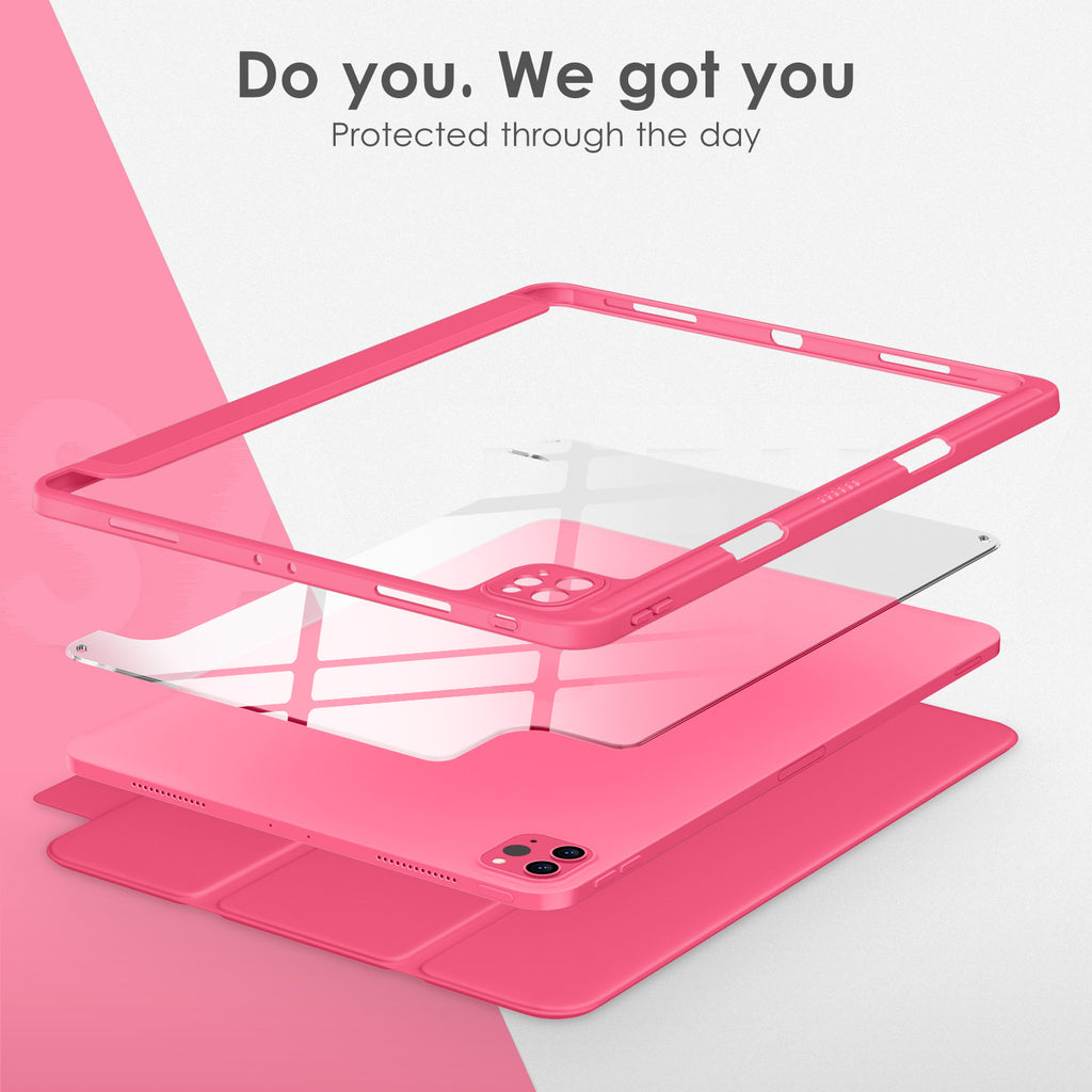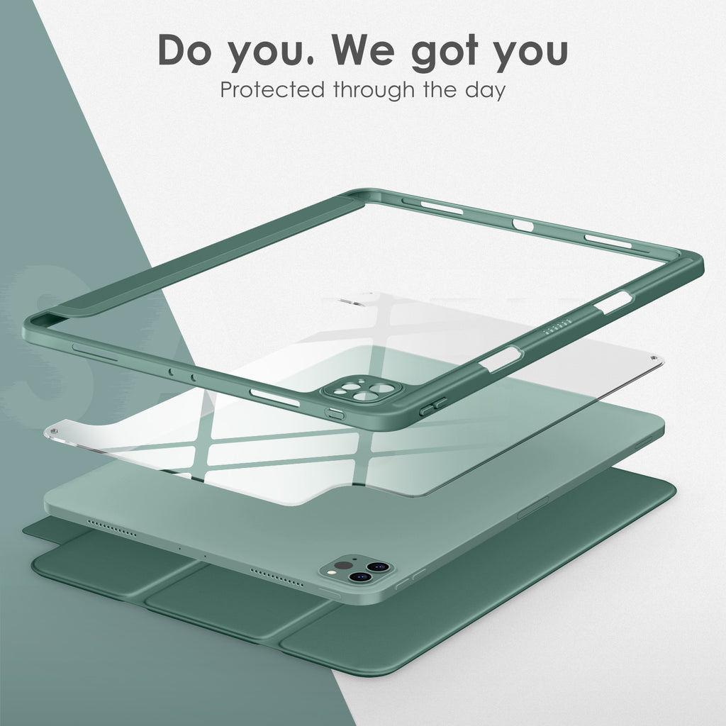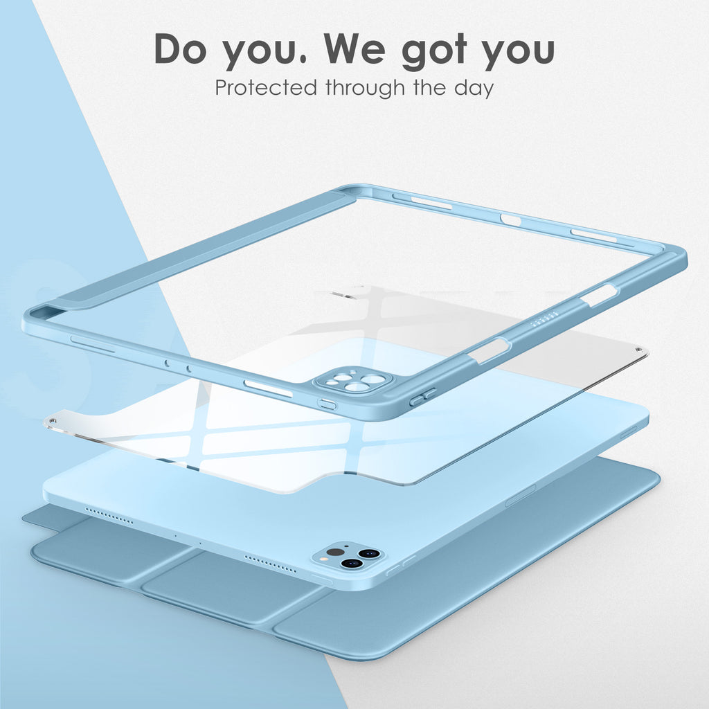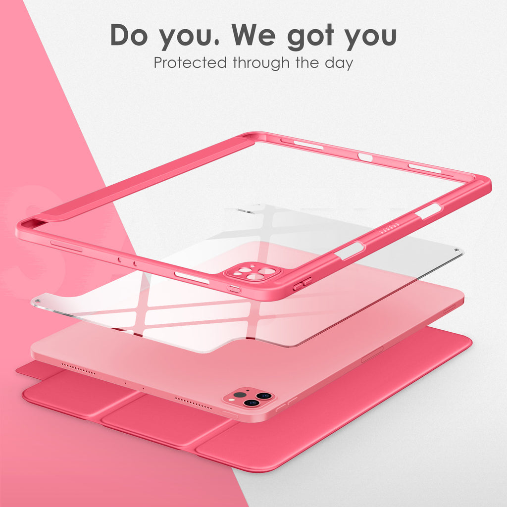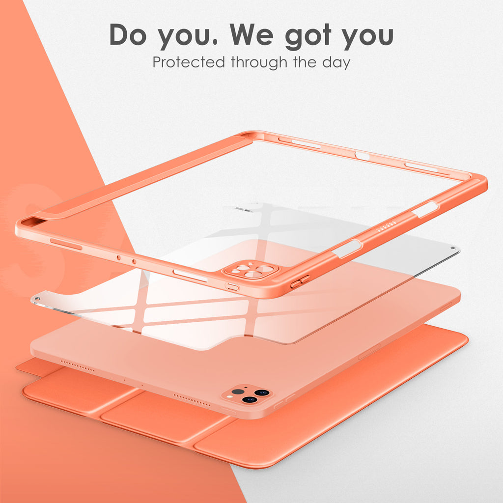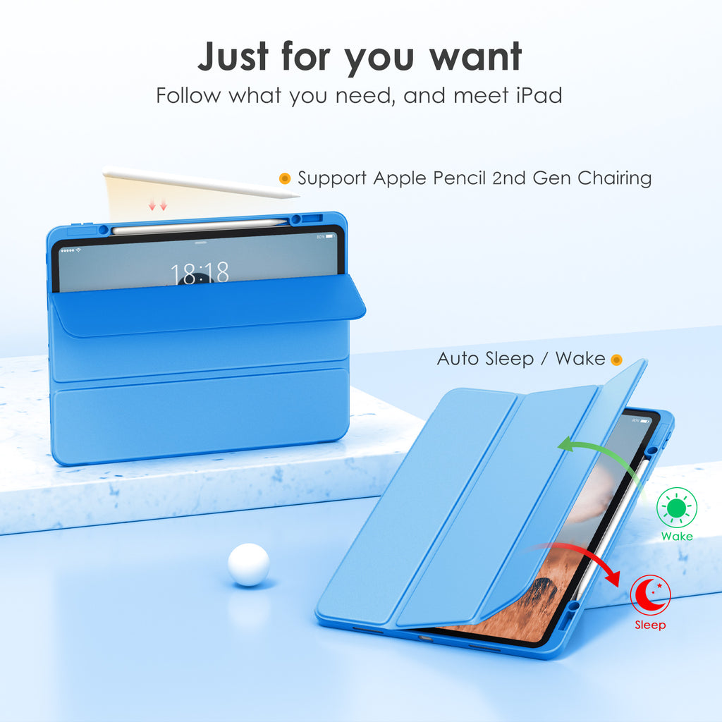 ⭐【Compatibility Model】This Clear Case is compatible with Apple iPad Pro 12.9 inch 6th/ 5th / 4th / 3rd Generation model:A2764/A2437/A2766/A2436/A2378/A2461/A2379/A2462/A2229/A2069/A2232/A2233/A1876/A2014/A1895/A1983(2022/2021/2020/2018 release), Not compatible with any other iPad devices. ⭐【Three-in-One Cover】Offers the difference by full protection Design, Front PU leather cover, and soft TPU frame protects your iPad from shocks, drops, and impacts. Hard crystal clear PC back provides strong support and is the place for DIY. ⭐【 Slim and Stylish 】Precise cutouts for all buttons and ports with just 0.05-inch Thickness, Minimalist shape, crystal clear back, and beautiful colors bring you to ease and comfort at any time. ⭐【Multiple Function】This iPad case has Pencil Holder to support 2nd Gen Pencil wireless charging, Camera Protection cover, built-in magnets design that supports Auto Wake/Sleep, Tri-fold front cover gives you 2 different view angles. ⭐【Lifetime Warranty 】DTTO Offers Lifetime Free Replacement for Your IPad Case. (Needs to be activated within 30 days of purchasing) Your Satisfaction Is Our Top Concern.