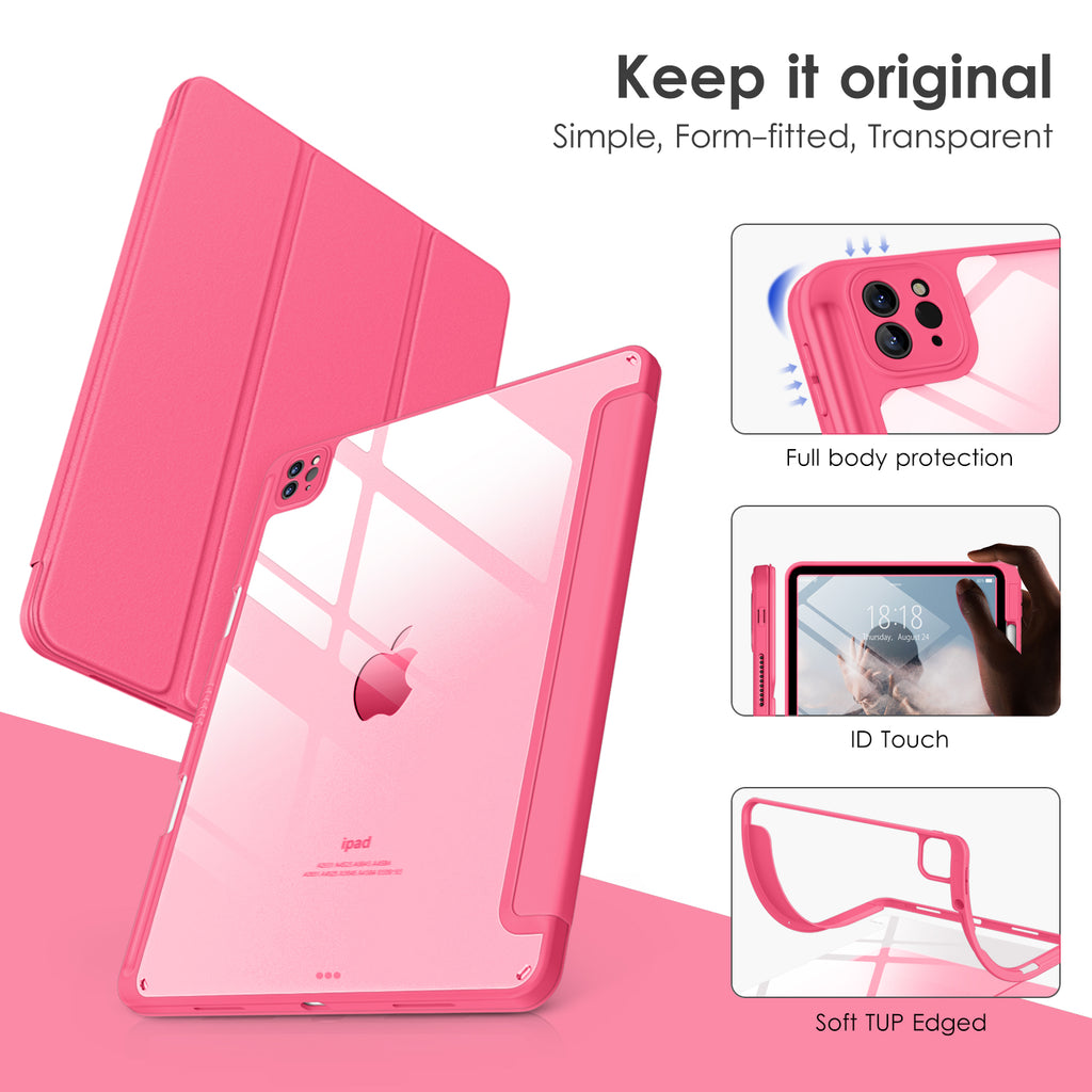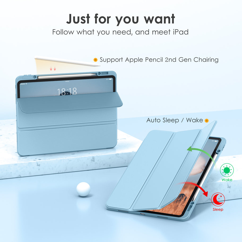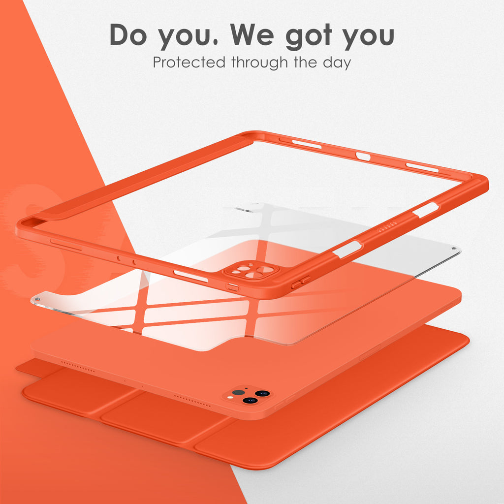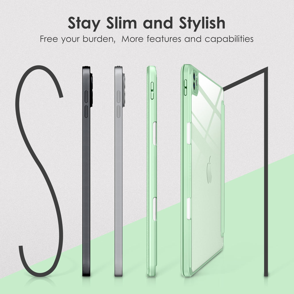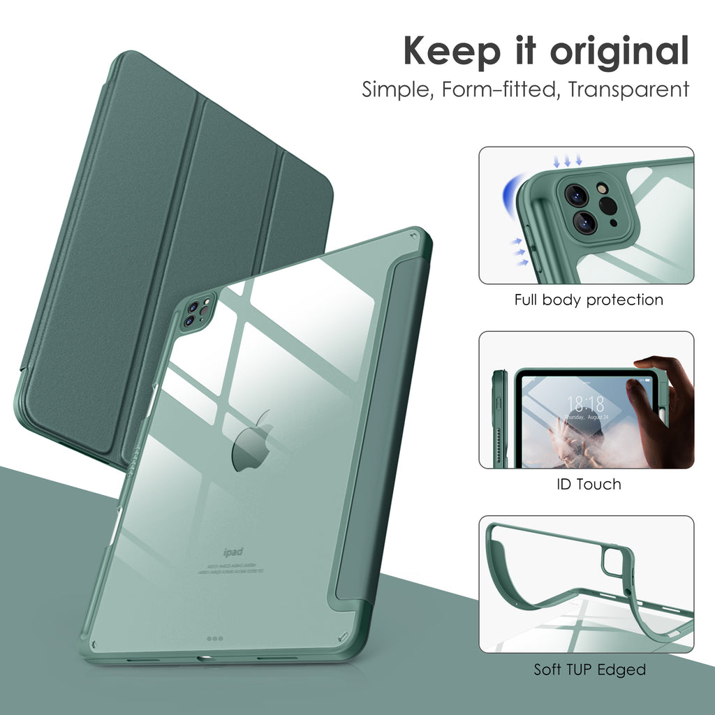 ⭐【Compatibility Model】This Clear Case is compatible with Apple iPad Pro 12.9 inch 6th/ 5th / 4th / 3rd Generation model:A2764/A2437/A2766/A2436/A2378/A2461/A2379/A2462/A2229/A2069/A2232/A2233/A1876/A2014/A1895/A1983(2022/2021/2020/2018 release), Not compatible with any other iPad devices. ⭐【Three-in-One Cover】Offers the difference by full protection Design, Front PU leather cover, and soft TPU frame protects your iPad from shocks, drops, and impacts. Hard crystal clear PC back provides strong support and is the place for DIY. ⭐【 Slim and Stylish 】Precise cutouts for all buttons and ports with just 0.05-inch Thickness, Minimalist shape, crystal clear back, and beautiful colors bring you to ease and comfort at any time. ⭐【Multiple Function】This iPad case has Pencil Holder to support 2nd Gen Pencil wireless charging, Camera Protection cover, built-in magnets design that supports Auto Wake/Sleep, Tri-fold front cover gives you 2 different view angles. ⭐【Lifetime Warranty 】DTTO Offers Lifetime Free Replacement for Your IPad Case. (Needs to be activated within 30 days of purchasing) Your Satisfaction Is Our Top Concern.