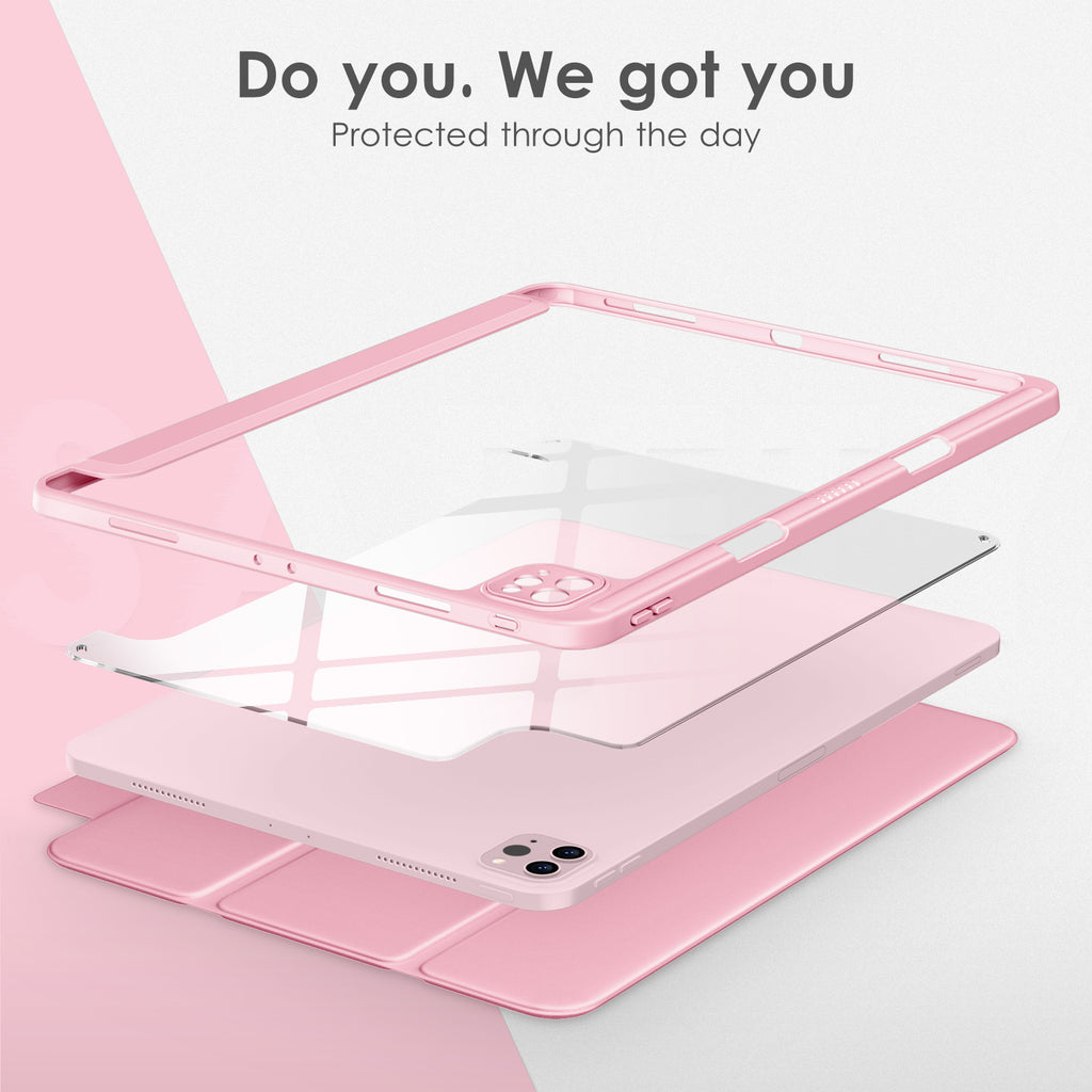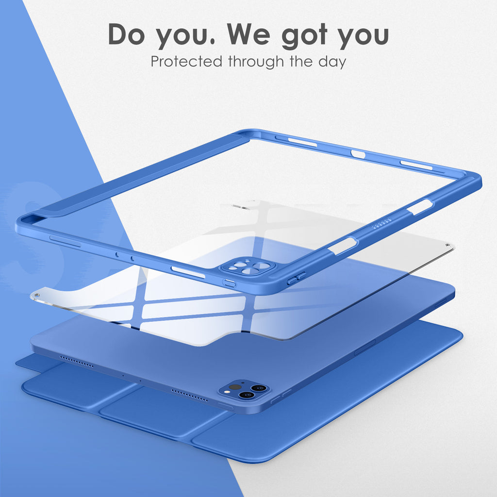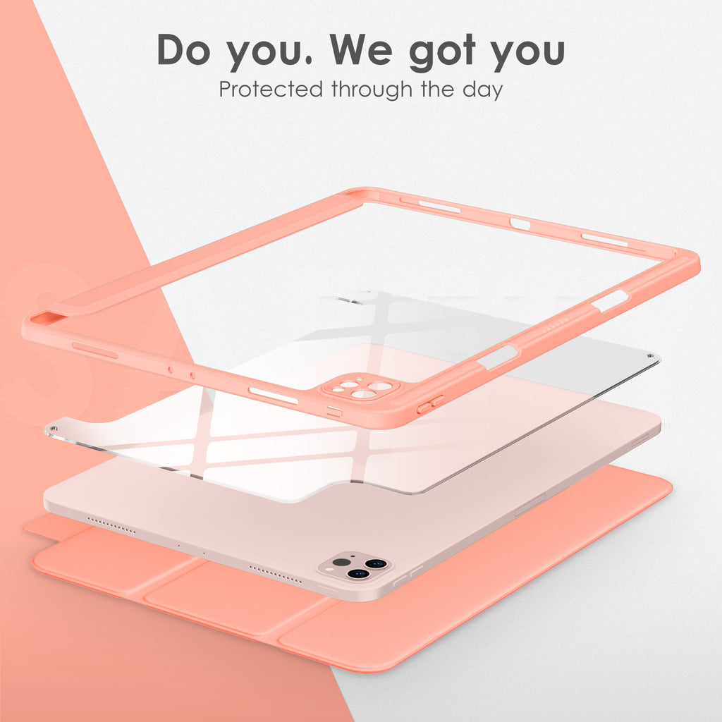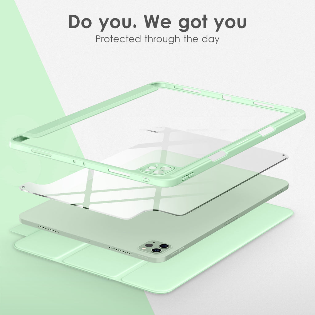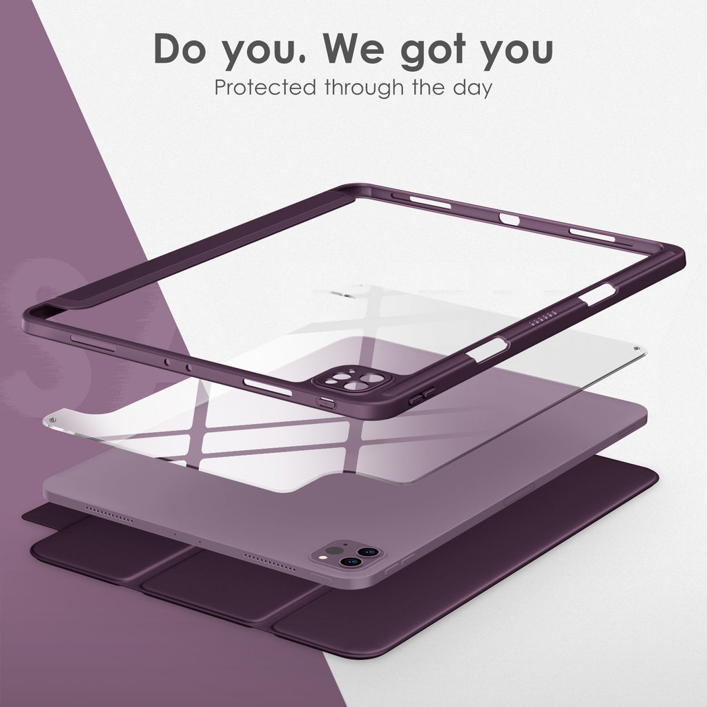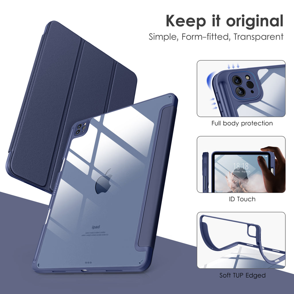 ⭐【Compatibility Model】This Clear Case is compatible with Apple iPad Pro 12.9 inch 6th/ 5th / 4th / 3rd Generation model:A2764/A2437/A2766/A2436/A2378/A2461/A2379/A2462/A2229/A2069/A2232/A2233/A1876/A2014/A1895/A1983(2022/2021/2020/2018 release), Not compatible with any other iPad devices. ⭐【Three-in-One Cover】Offers the difference by full protection Design, Front PU leather cover, and soft TPU frame protects your iPad from shocks, drops, and impacts. Hard crystal clear PC back provides strong support and is the place for DIY. ⭐【 Slim and Stylish 】Precise cutouts for all buttons and ports with just 0.05-inch Thickness, Minimalist shape, crystal clear back, and beautiful colors bring you to ease and comfort at any time. ⭐【Multiple Function】This iPad case has Pencil Holder to support 2nd Gen Pencil wireless charging, Camera Protection cover, built-in magnets design that supports Auto Wake/Sleep, Tri-fold front cover gives you 2 different view angles. ⭐【Lifetime Warranty 】DTTO Offers Lifetime Free Replacement for Your IPad Case. (Needs to be activated within 30 days of purchasing) Your Satisfaction Is Our Top Concern.