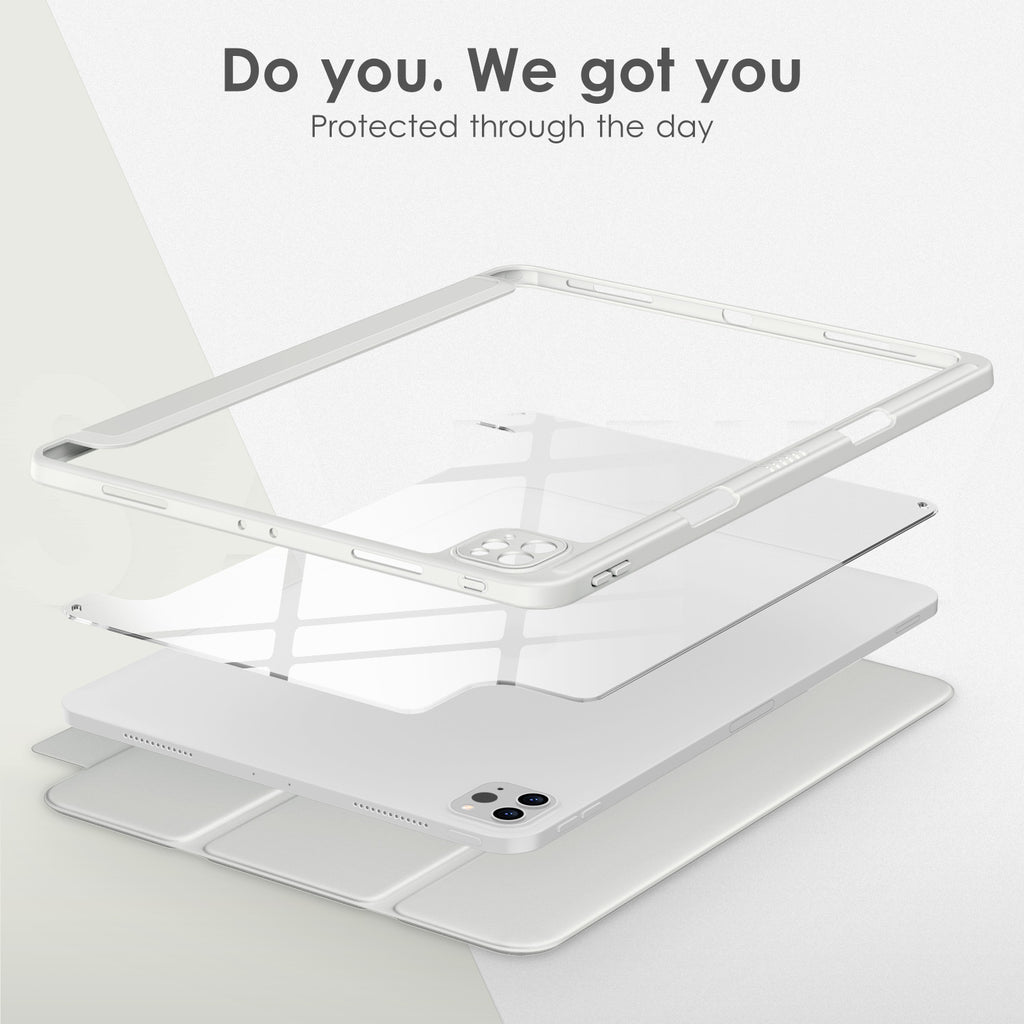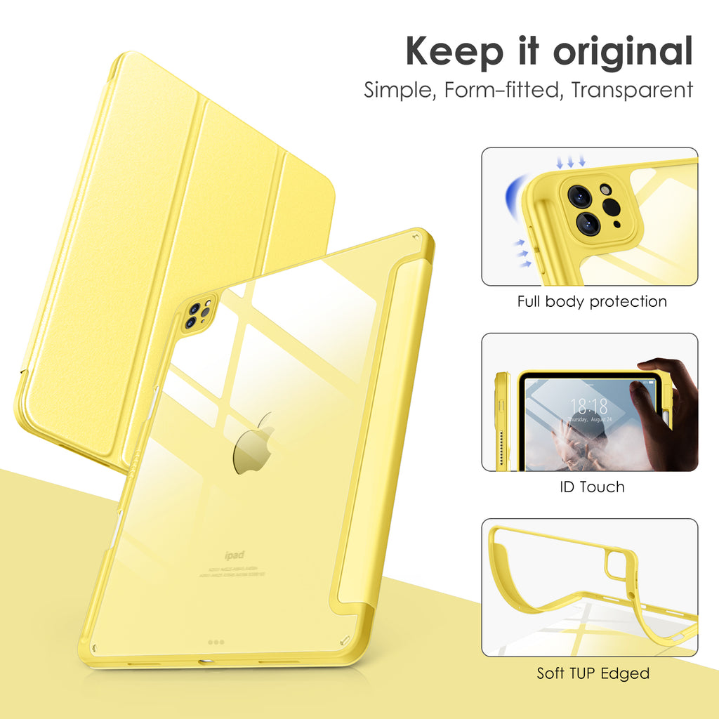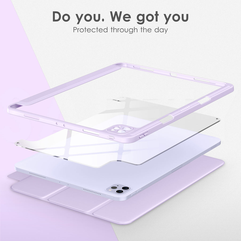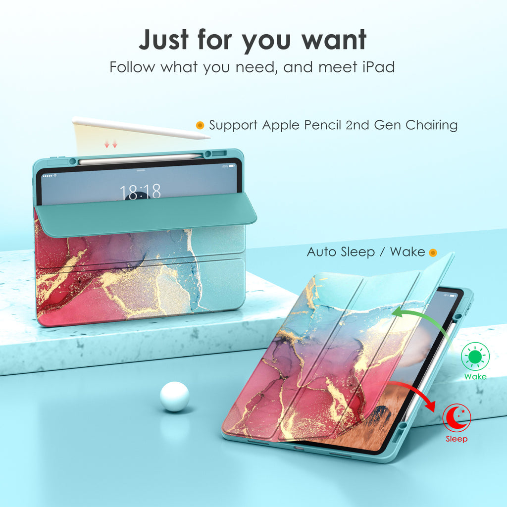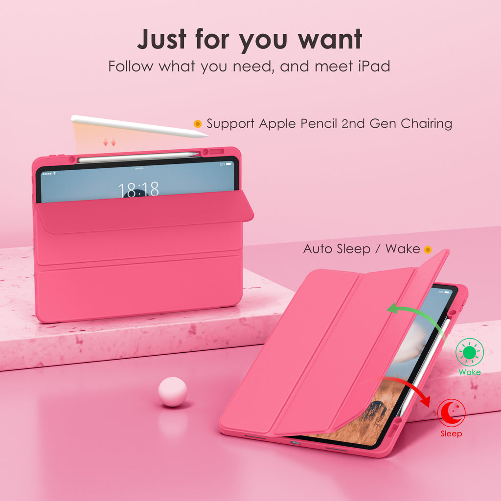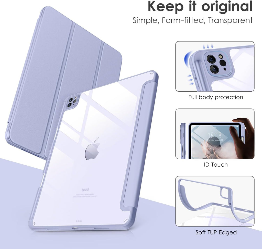 ⭐【Compatibility Model】This Clear Case is compatible with Apple iPad Pro 12.9 inch 6th/ 5th / 4th / 3rd Generation model:A2764/A2437/A2766/A2436/A2378/A2461/A2379/A2462/A2229/A2069/A2232/A2233/A1876/A2014/A1895/A1983(2022/2021/2020/2018 release), Not compatible with any other iPad devices. ⭐【Three-in-One Cover】Offers the difference by full protection Design, Front PU leather cover, and soft TPU frame protects your iPad from shocks, drops, and impacts. Hard crystal clear PC back provides strong support and is the place for DIY. ⭐【 Slim and Stylish 】Precise cutouts for all buttons and ports with just 0.05-inch Thickness, Minimalist shape, crystal clear back, and beautiful colors bring you to ease and comfort at any time. ⭐【Multiple Function】This iPad case has Pencil Holder to support 2nd Gen Pencil wireless charging, Camera Protection cover, built-in magnets design that supports Auto Wake/Sleep, Tri-fold front cover gives you 2 different view angles. ⭐【Lifetime Warranty 】DTTO Offers Lifetime Free Replacement for Your IPad Case. (Needs to be activated within 30 days of purchasing) Your Satisfaction Is Our Top Concern.