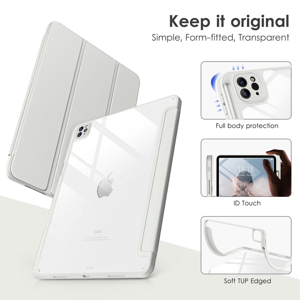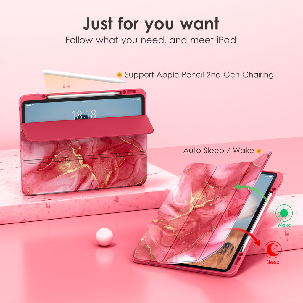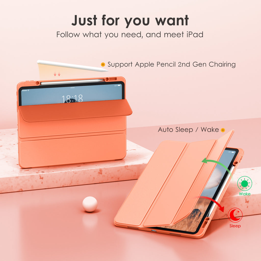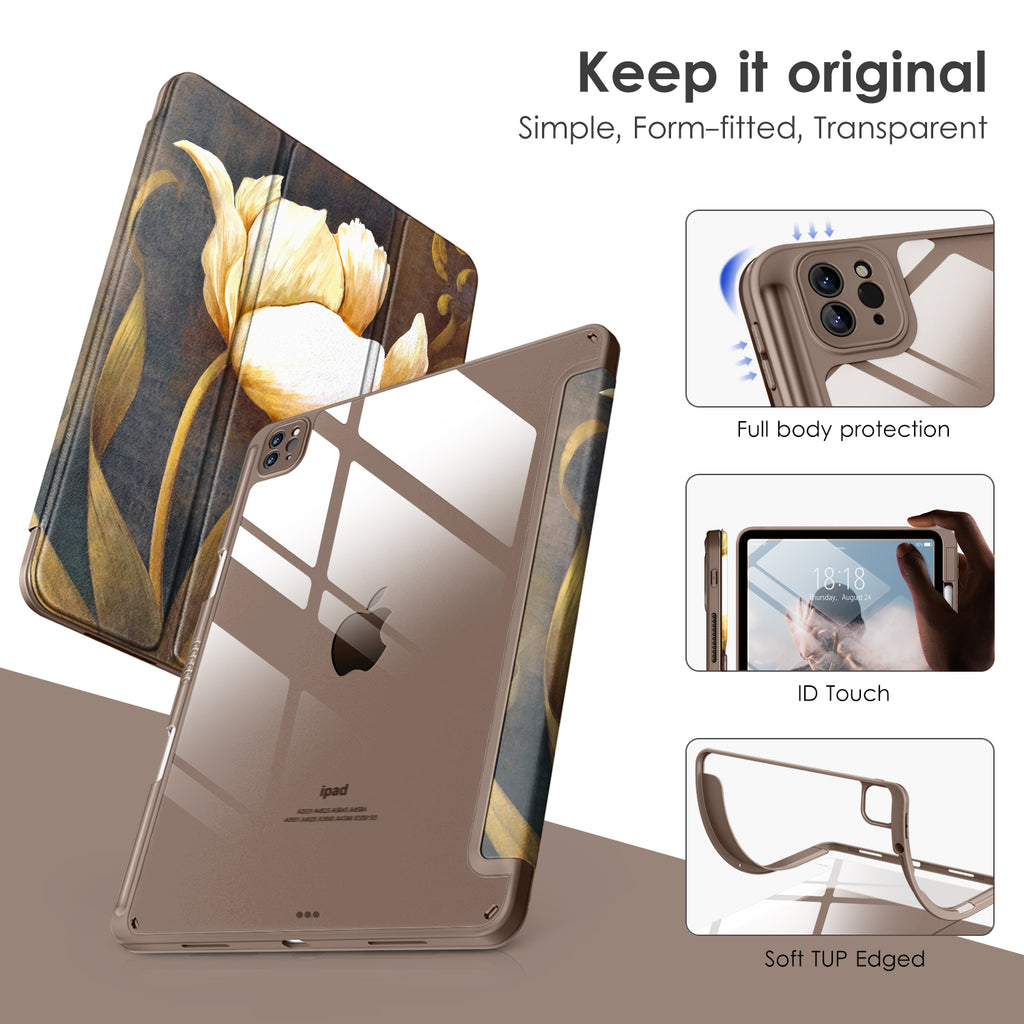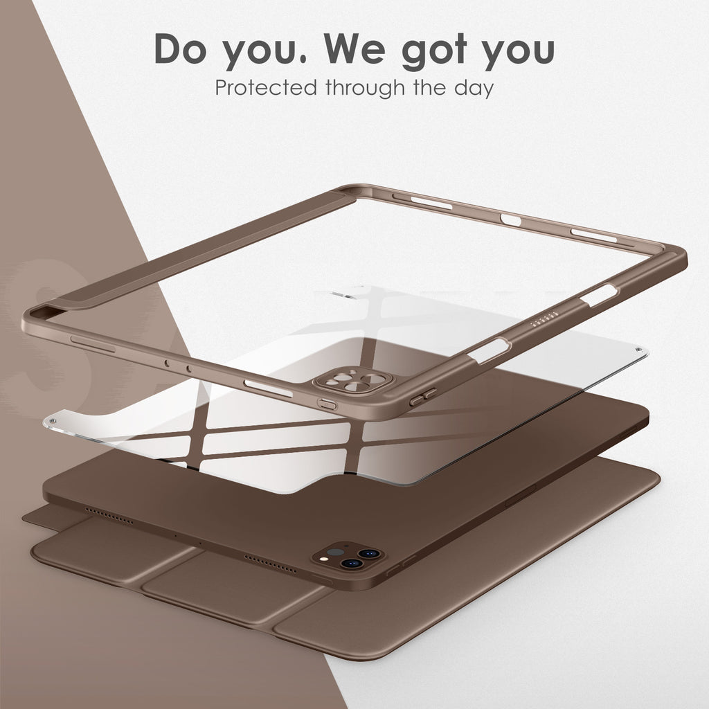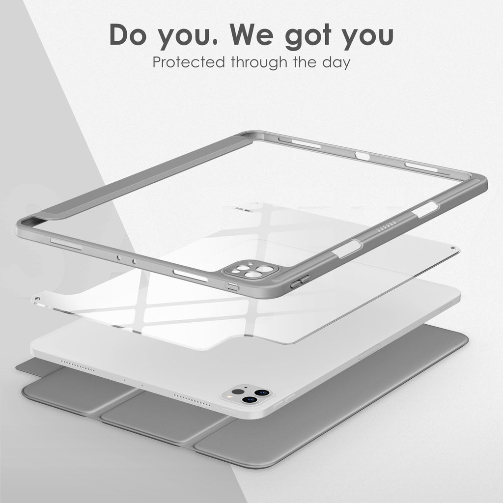 ⭐【Compatibility Model】This Clear Case is compatible with Apple iPad Pro 12.9 inch 6th/ 5th / 4th / 3rd Generation model:A2764/A2437/A2766/A2436/A2378/A2461/A2379/A2462/A2229/A2069/A2232/A2233/A1876/A2014/A1895/A1983(2022/2021/2020/2018 release), Not compatible with any other iPad devices. ⭐【Three-in-One Cover】Offers the difference by full protection Design, Front PU leather cover, and soft TPU frame protects your iPad from shocks, drops, and impacts. Hard crystal clear PC back provides strong support and is the place for DIY. ⭐【 Slim and Stylish 】Precise cutouts for all buttons and ports with just 0.05-inch Thickness, Minimalist shape, crystal clear back, and beautiful colors bring you to ease and comfort at any time. ⭐【Multiple Function】This iPad case has Pencil Holder to support 2nd Gen Pencil wireless charging, Camera Protection cover, built-in magnets design that supports Auto Wake/Sleep, Tri-fold front cover gives you 2 different view angles. ⭐【Lifetime Warranty 】DTTO Offers Lifetime Free Replacement for Your IPad Case. (Needs to be activated within 30 days of purchasing) Your Satisfaction Is Our Top Concern.
