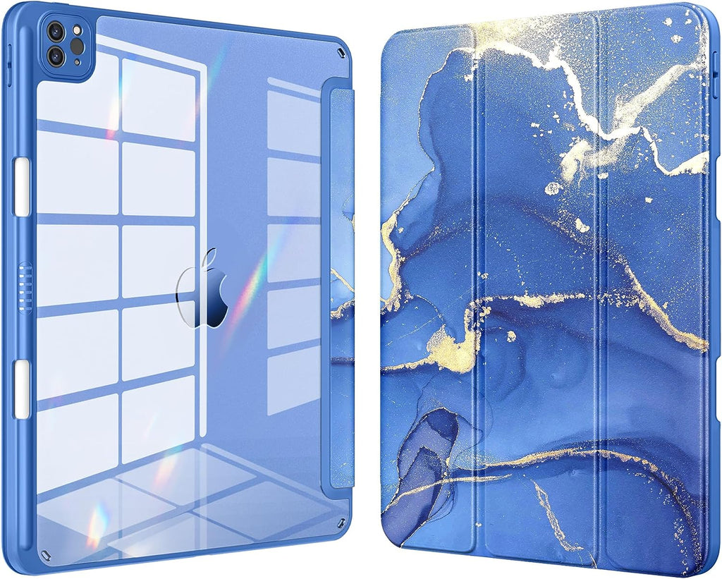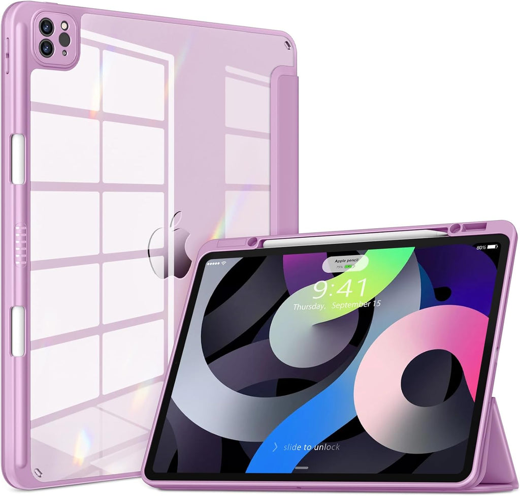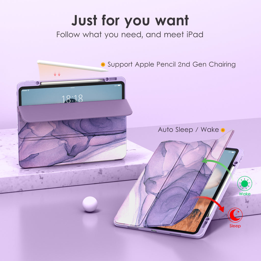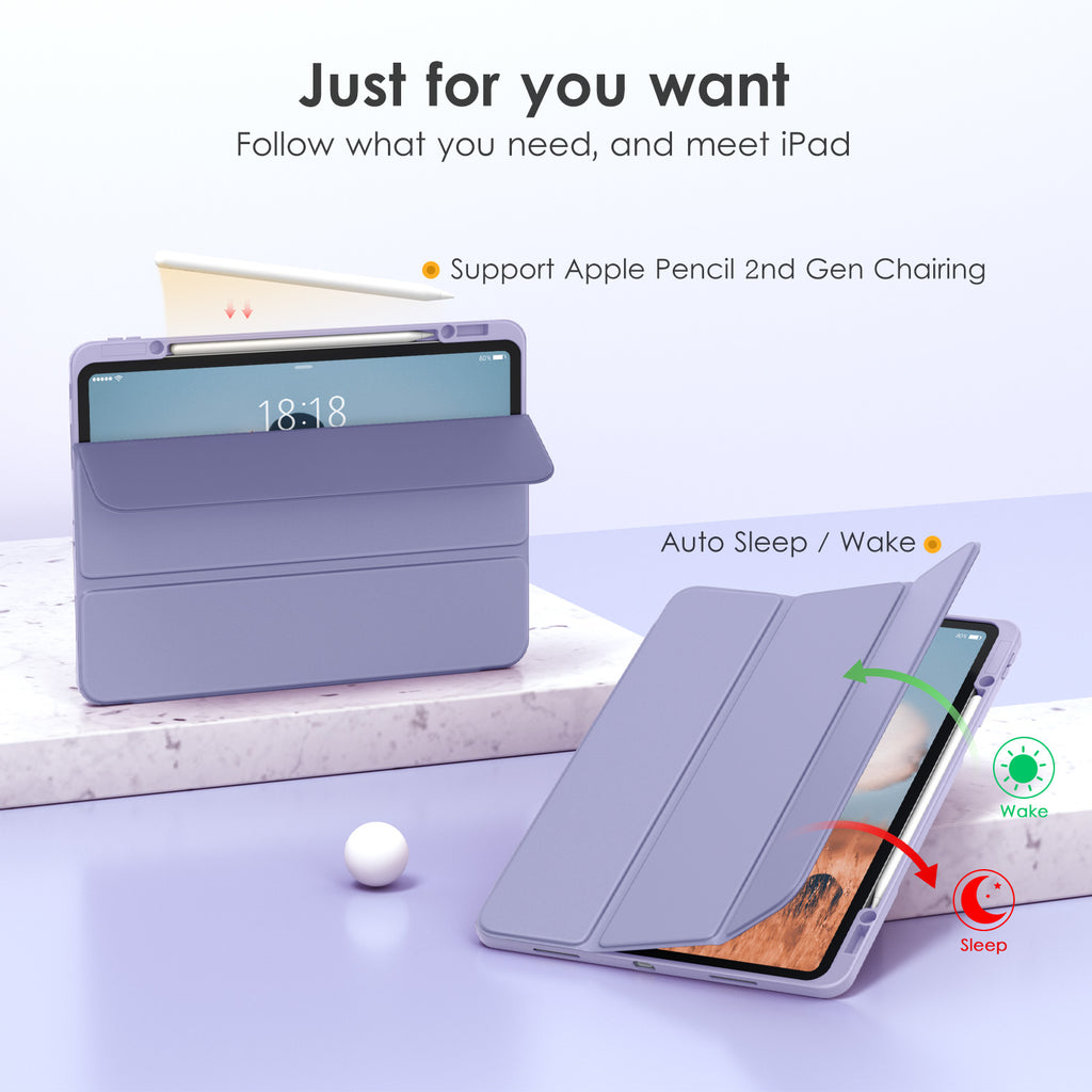 DTTOCASE iPad Pro 12.9 Case 6th / 5th / 4th / 3rd Generation 2022/2021 / 2020/2018,12.9 inch Clear Back Cover[Built-in Pencil Holder,Auto Sleep/Wake,Camera Protection] for iPad Pro-Blue Purple