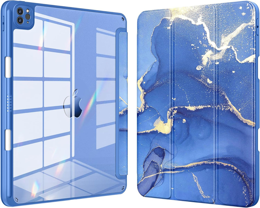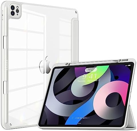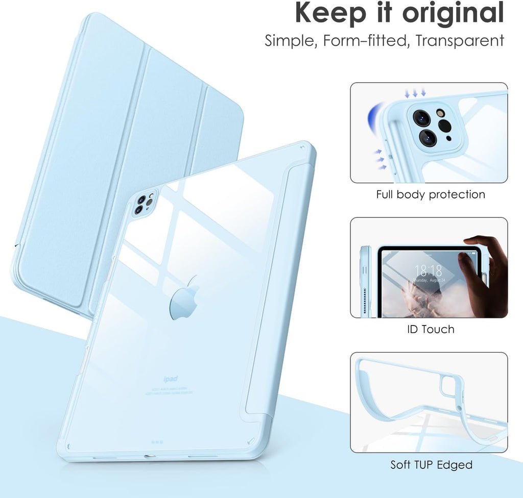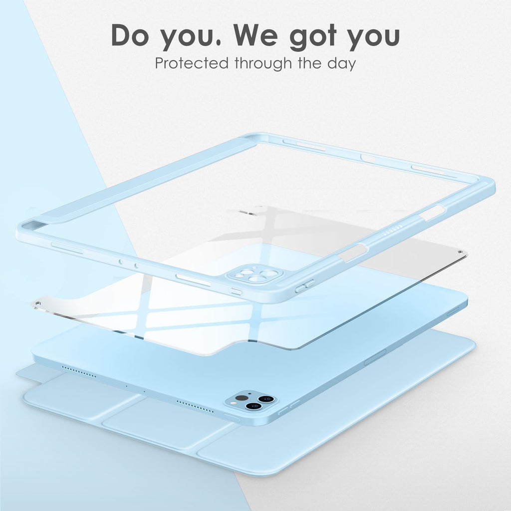 DTTOCASE iPad Pro 12.9 Case 6th/5th/4th/3rd Generation 2022/2021/2020/2018,12.9 inch Clear Shockproof Back Cover[Built-in Pencil Holder,Auto Sleep/Wake,Camera Protection] for iPad Pro-Ice Blue