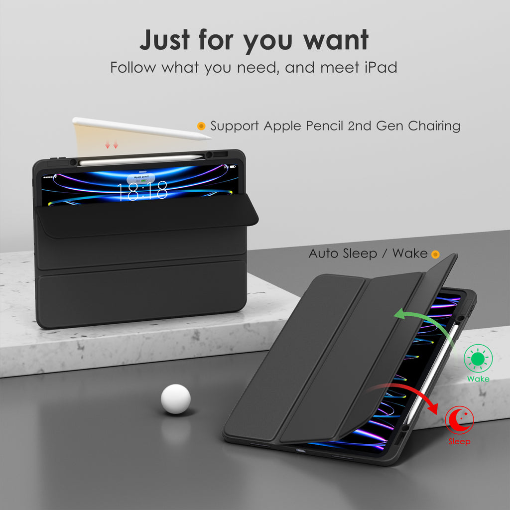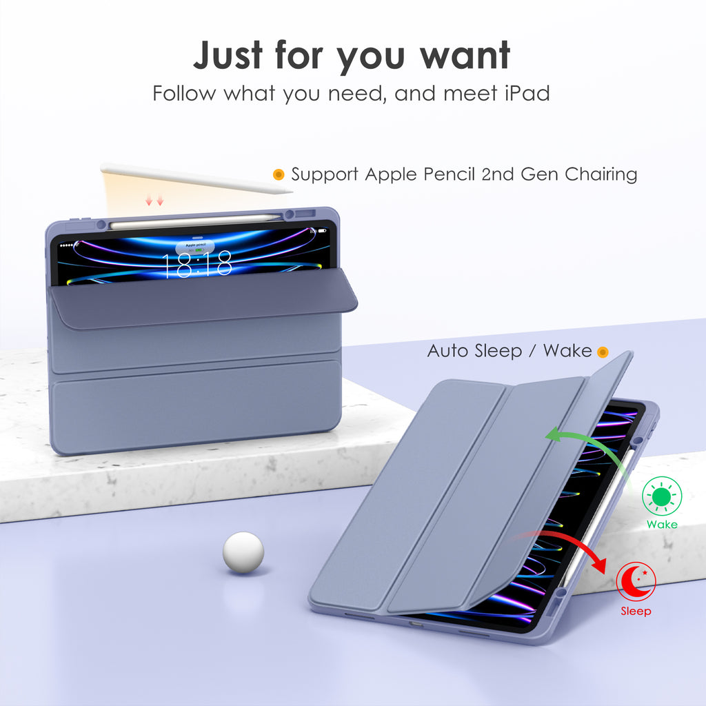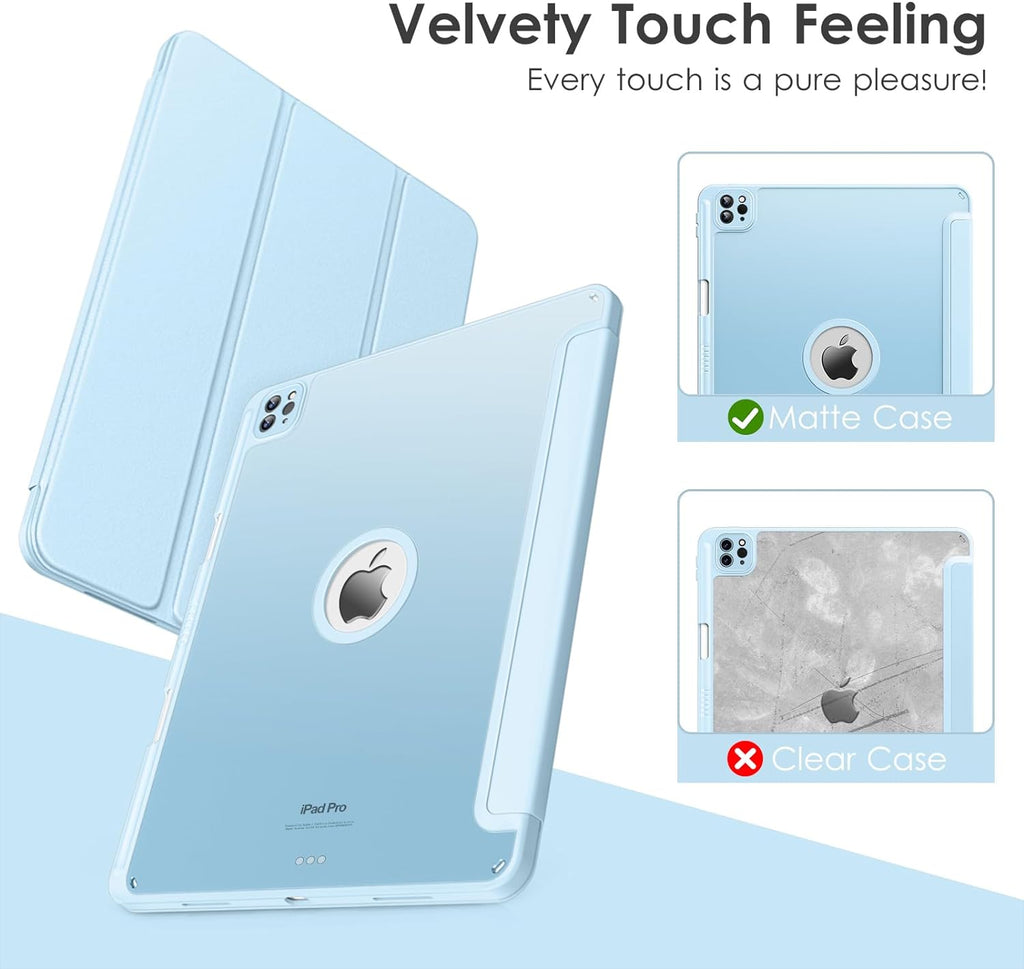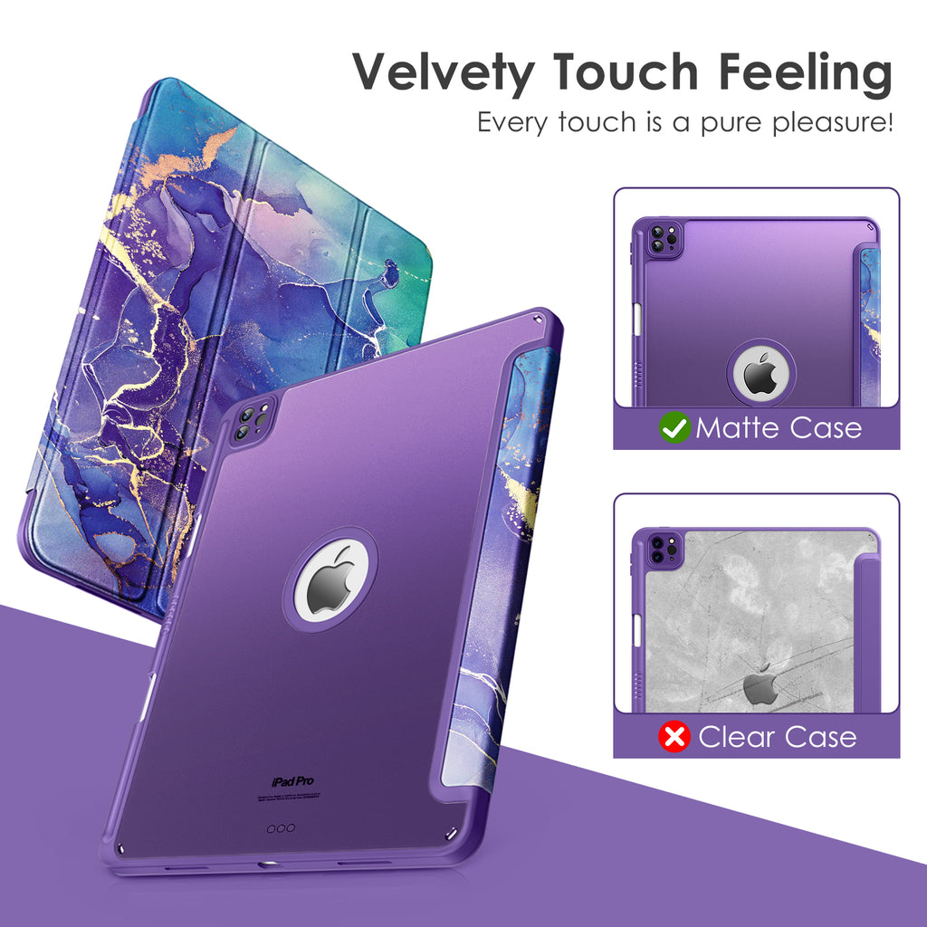 ⚠【Compatibility Model】This Smooth Matte Case is compatible with Apple iPad Pro 12.9 inch 6th / 5th / 4th / 3rd Generation model:A2764/A2437/A2766/A2436/A2378/A2461/A2379/A2462/A2229/A2069/A2232/A2233/A1876/A2014/A1895/A1983(2022/2021/2020/2018 released), Not compatible with any other iPad devices. ⭐【Velvety Touch Feel】 Our iPad case features Nano-Oleophobic and hydrophobic coating to resist smudges and scratches, leaving your ipadlooking as fresh and new as the day you got it and brings a comfortable touching experience and even more protection. ⭐【Exclusive patent design】Precise cutouts for all buttons and ports with just 0.05-inch Thickness, Minimalist shape, Smooth Matte back, and beautiful colors bring you to ease and comfort at any time. ⭐【Multiple Function】This iPad case has Pencil Holder to support 2nd Gen Pencil wireless charging, Camera Protection cover, built-in magnets design that supports Auto Wake/Sleep, Tri-fold front cover gives you 2 different view angles. 💯【Reliable Supplier】DTTO Offers Free Replacement for Your iPad Pro 12.9 Case (Needs to be activated within 30 days of purchasing). Your Satisfaction Is Our Top Concern.