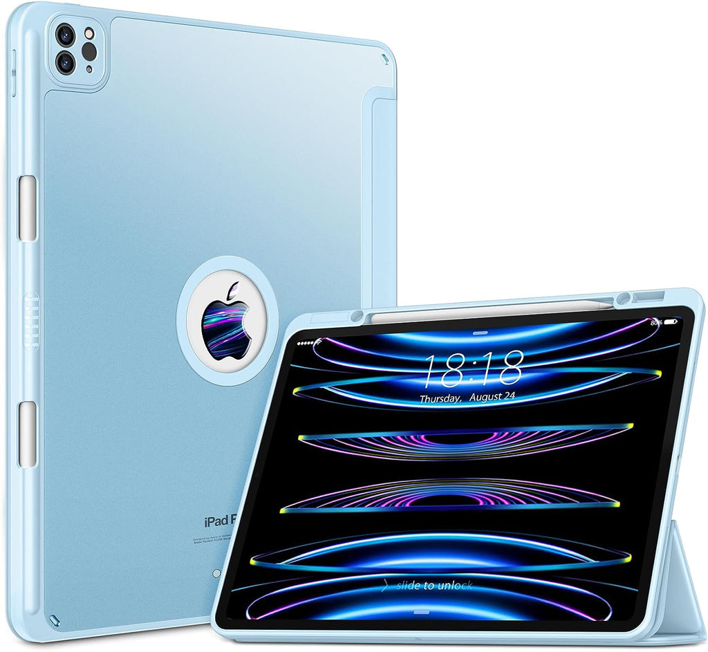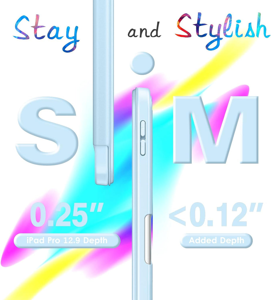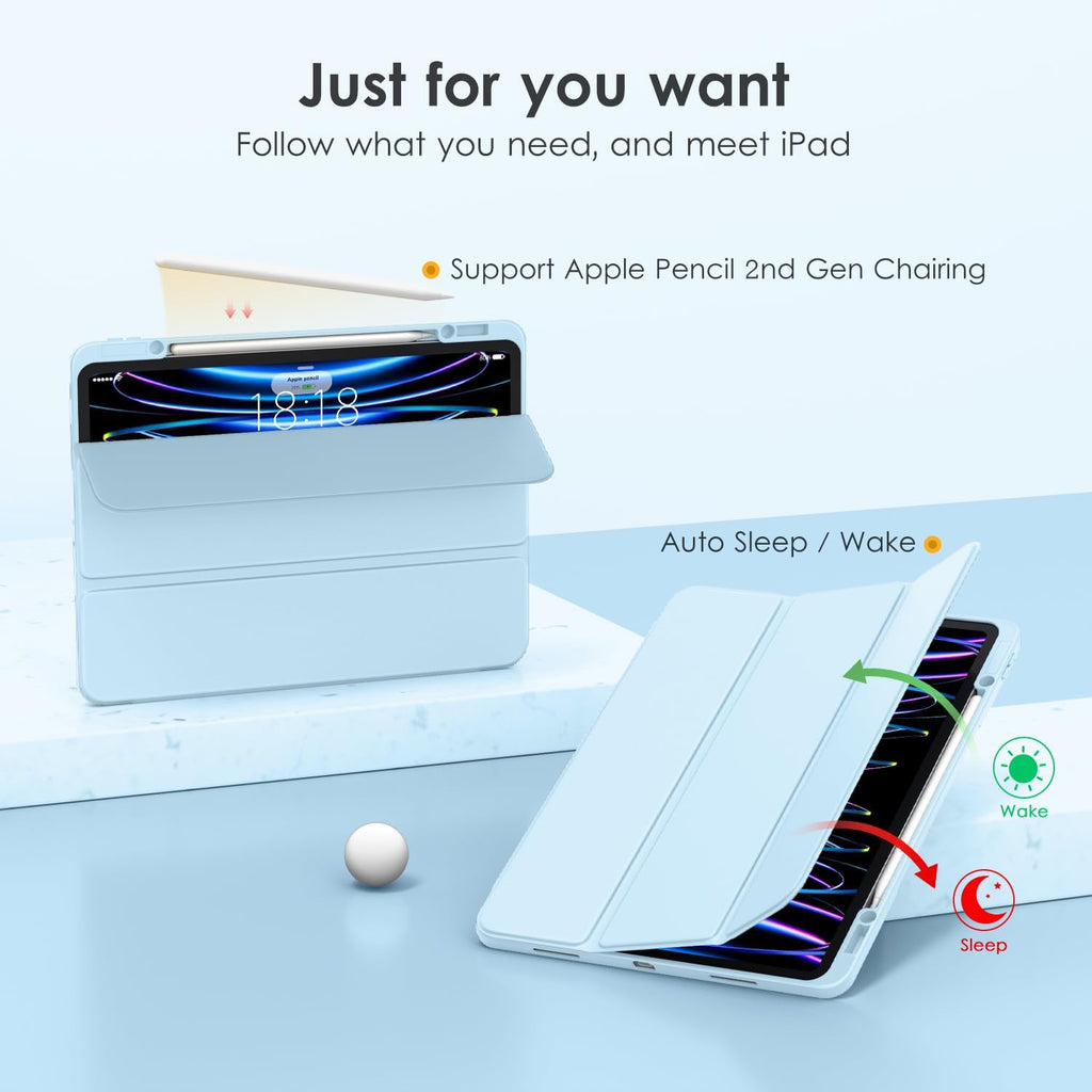 VIKESI iPad Pro 12.9 Smooth Matte Case with Pencil Holder and Camera Protector for iPad Pro 12.9 inch 6th / 5th / 4th / 3rd Generation Released in 2022/2021 / 2020/2018 - Light Blue