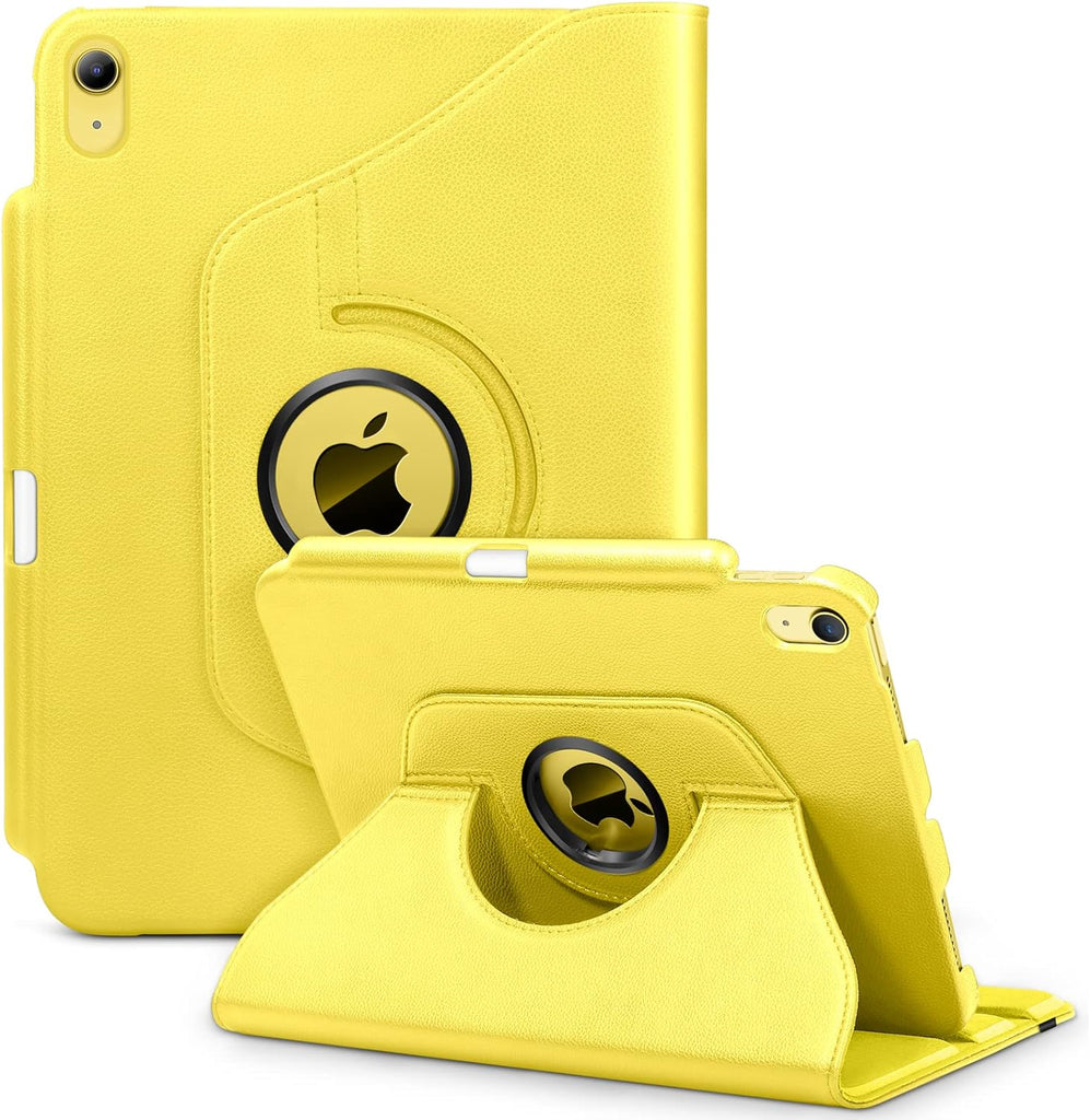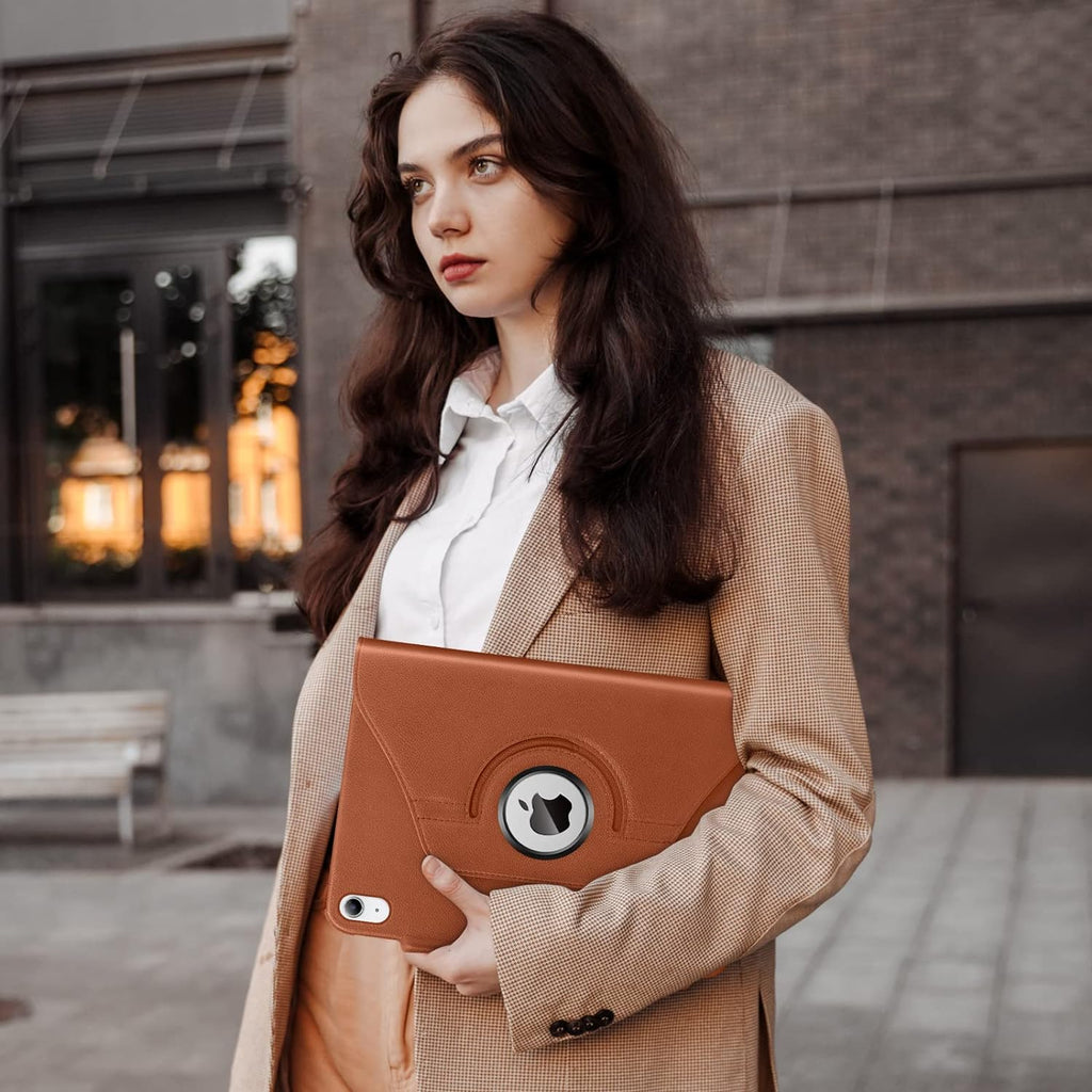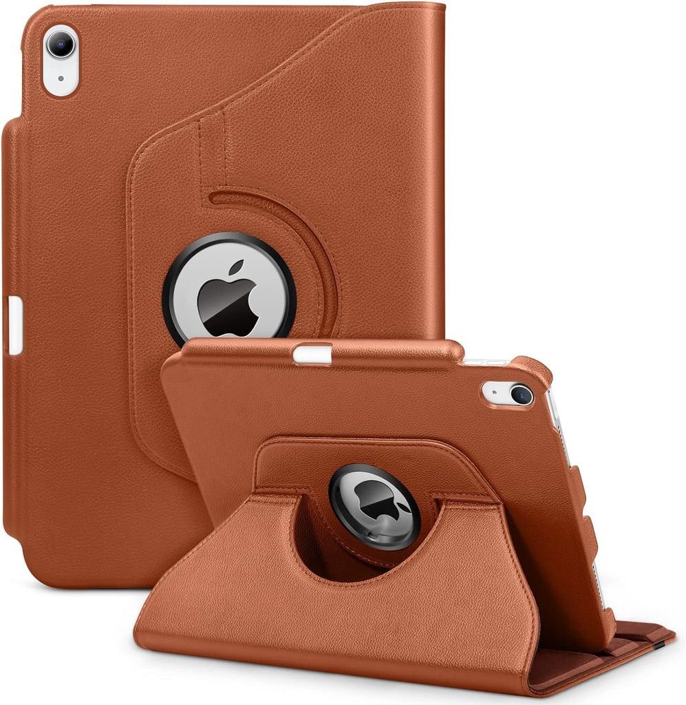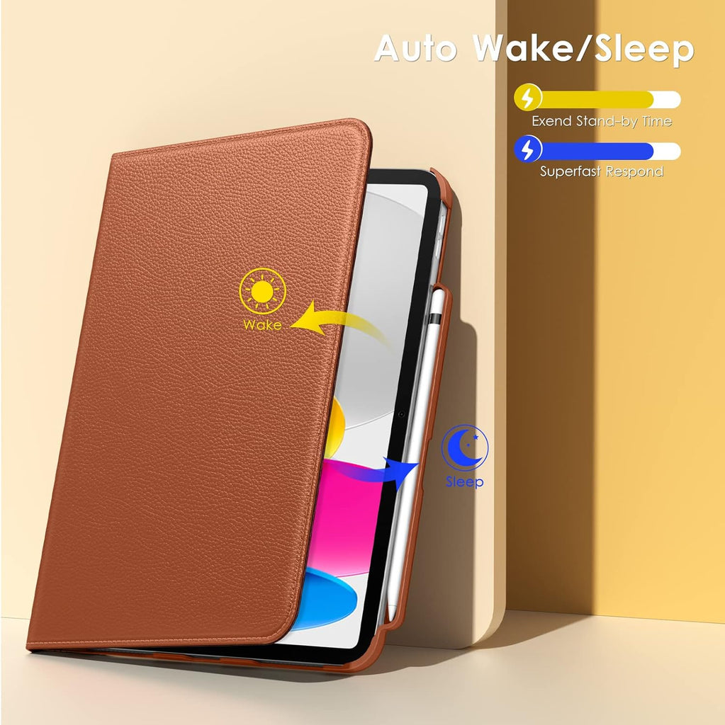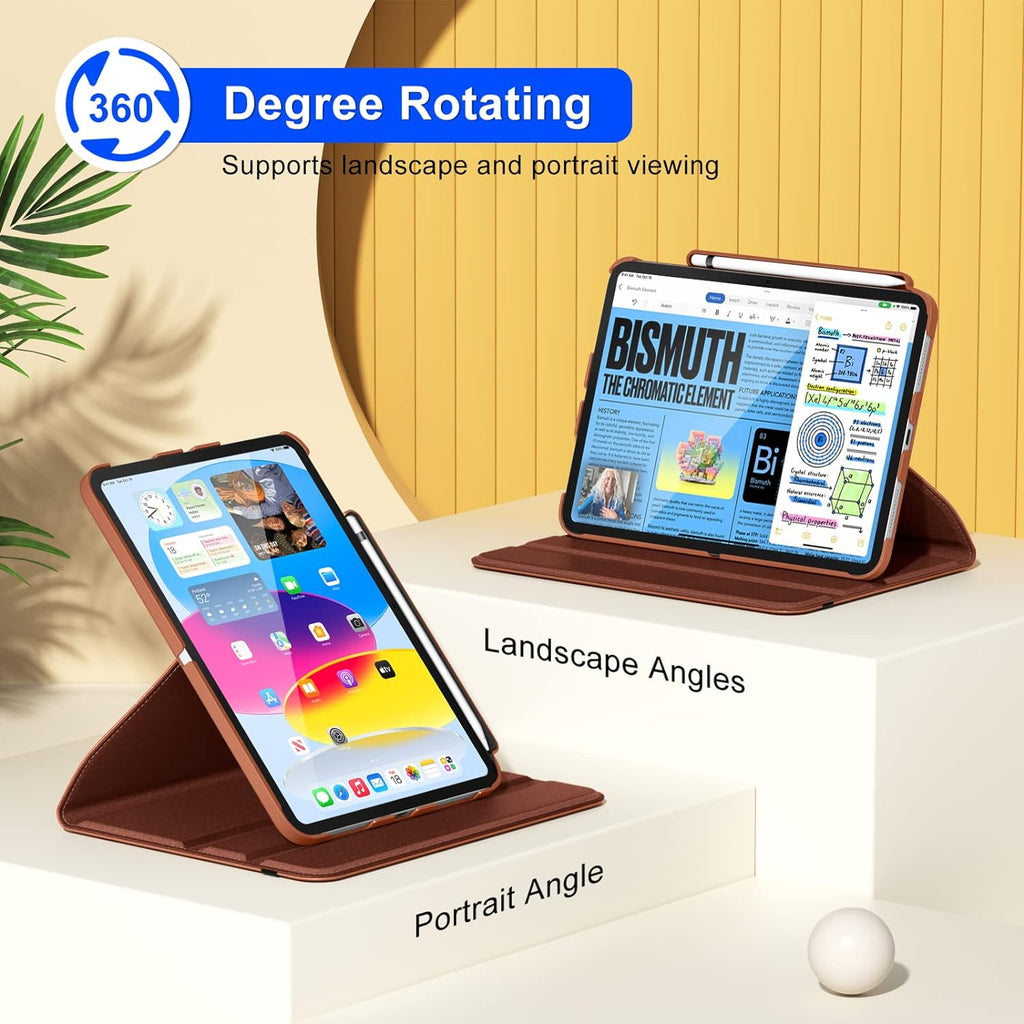 DTTOCASE Rotating Case for iPad 10th Generation 2022, 10.9 Inch iPad Smart Folio Leather Cover with Pencil Holder, 360 Degree Rotating Protective Stand,and Close Strip - Brown