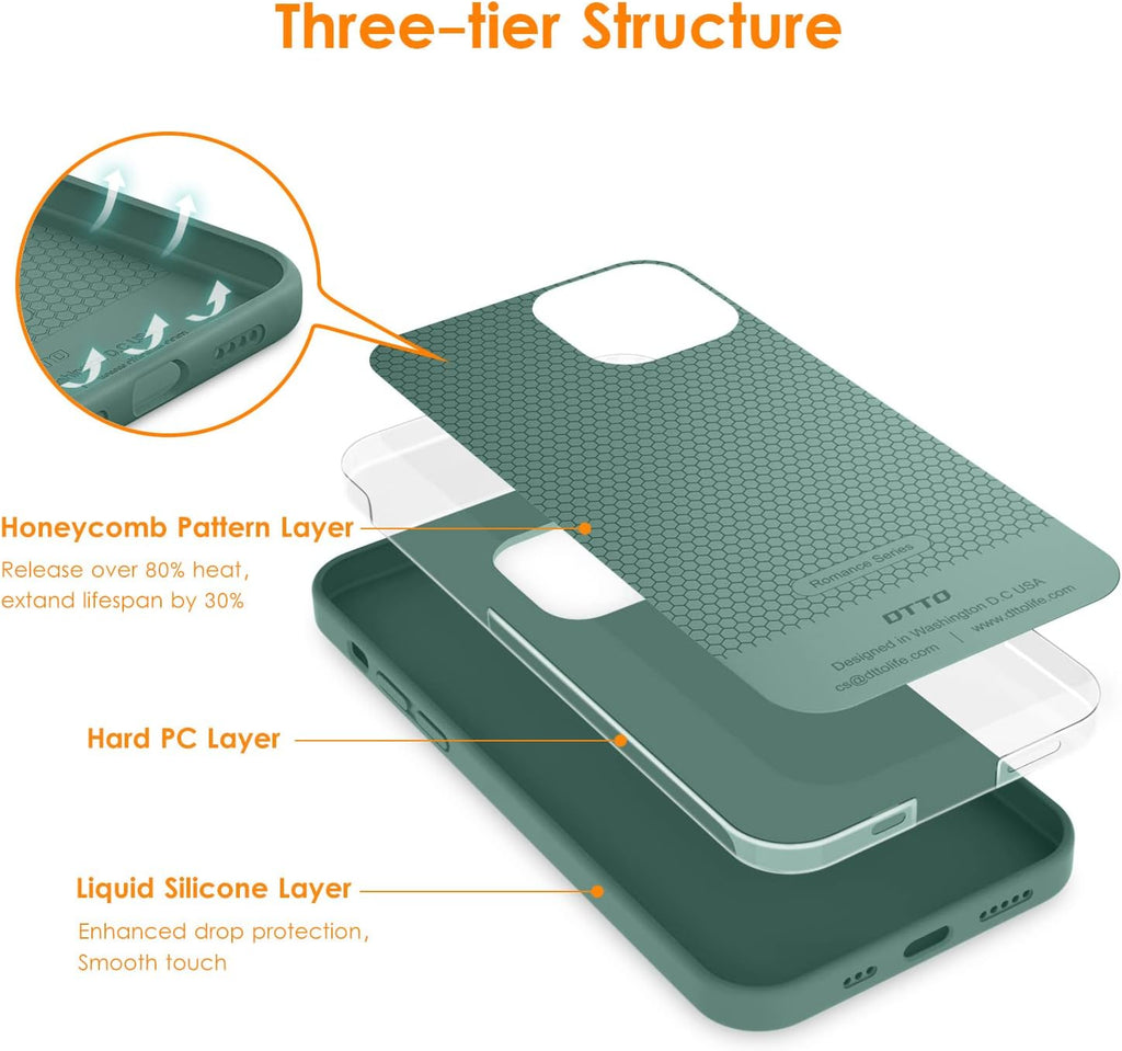 【Compatibility】Durable Liquid Silicone Case for iPhone 12/12 Pro 6.1 inch (2020 release), Offering Smooth and Skin-feel Grip 【Honeycomb Cushion】 Release 80% More Heat than Other Cases, Extend Your iPhone Lifespan. 【Enhanced Raised Lips】 to Protect iPhone 12/12 Pro Screen and Camera from Scratching and Dropping. Precise Cutouts for Easy Access 【Hybrid Protection】Triple Layer Design Offers Hybrid Protection While Keeps Slim-fit Profile, Support Wireless Charging 【Lifetime Warranty 】DTTO Offers Lifetime Free Replacement for Your iPhone Silicone Case (Needs to be actived within 30 days of purchasing). Your Satisfaction Is Our Top Concern