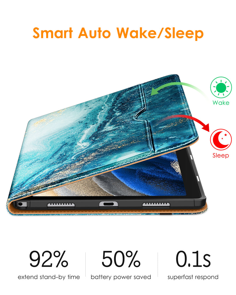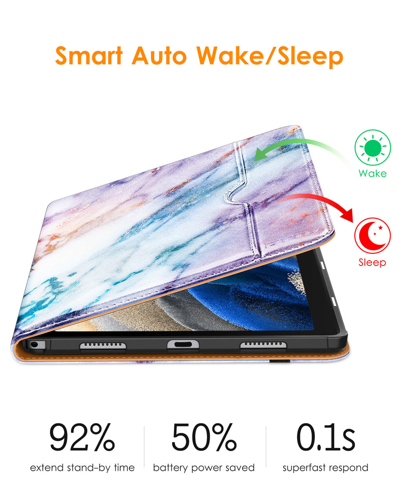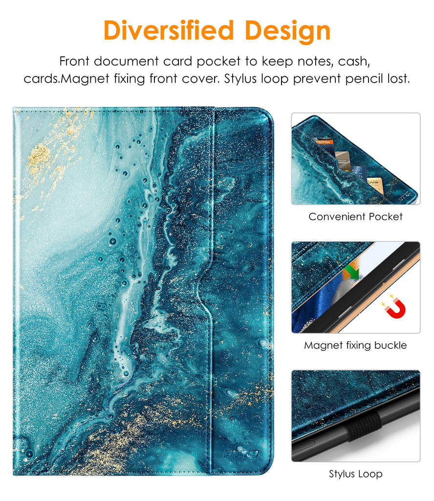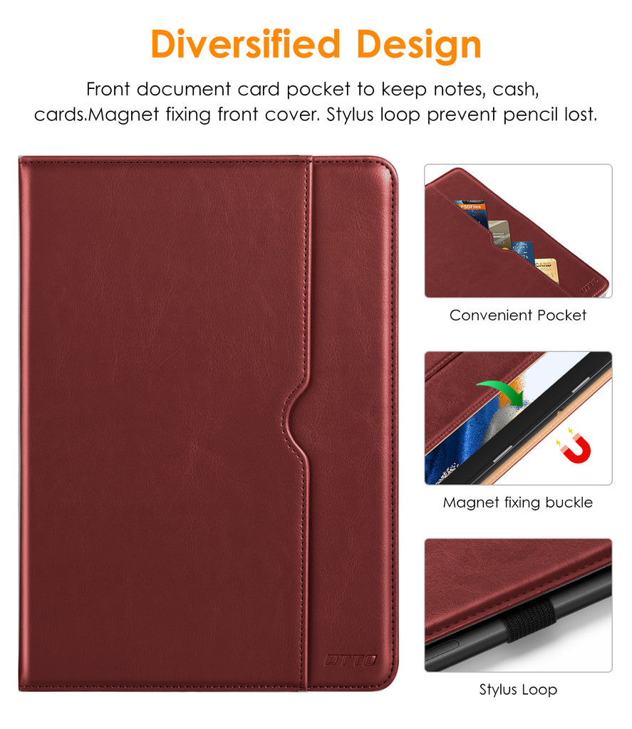 ✔Compatibility - Designed for the Samsung Galaxy Tab A8 10.5 inch 2022 Released Tablet(Model Number: SM-X200/SM-X205/SM-X207). Not compatible with any other Samsung tablet model.    ✔Premium Material - Exterior is made of premium synthetic leather, lined with microfiber provide full protection for your iPad. Front document card pocket to keep notes, cash, cards.    ✔Auto Sleep/Wake - Front cover have Auto Wakes/Sleep function, external elastic band and magnetic buckle enhances magnetic closure (reduces battery drain).    ✔Multi-functional Features - Built-in leather hand strap (one-handed operation) and elastic stylus pen holder for S Pencil, multiple horizontal bracket angles for comfortable watching movie or typing.    ✔Lifetime Warranty - DTTO Offers Lifetime Free Replacement for Your Samsung Galaxy Tab A8 10.5 inch 2022 case(Needs to be activated within 30 days of purchasing). Your Satisfaction Is Our Top Concern.