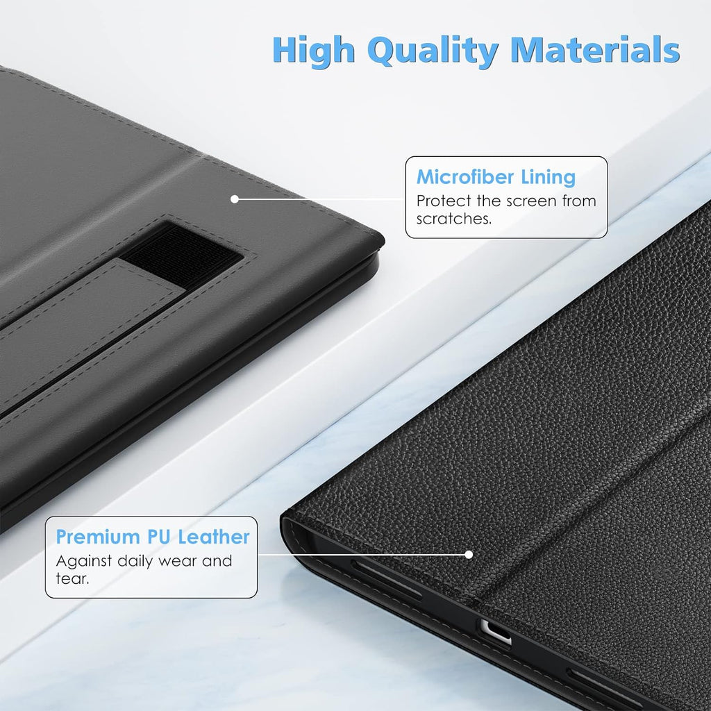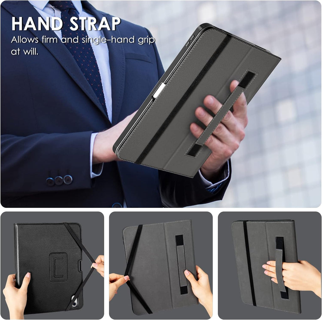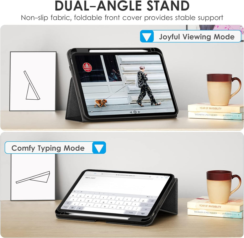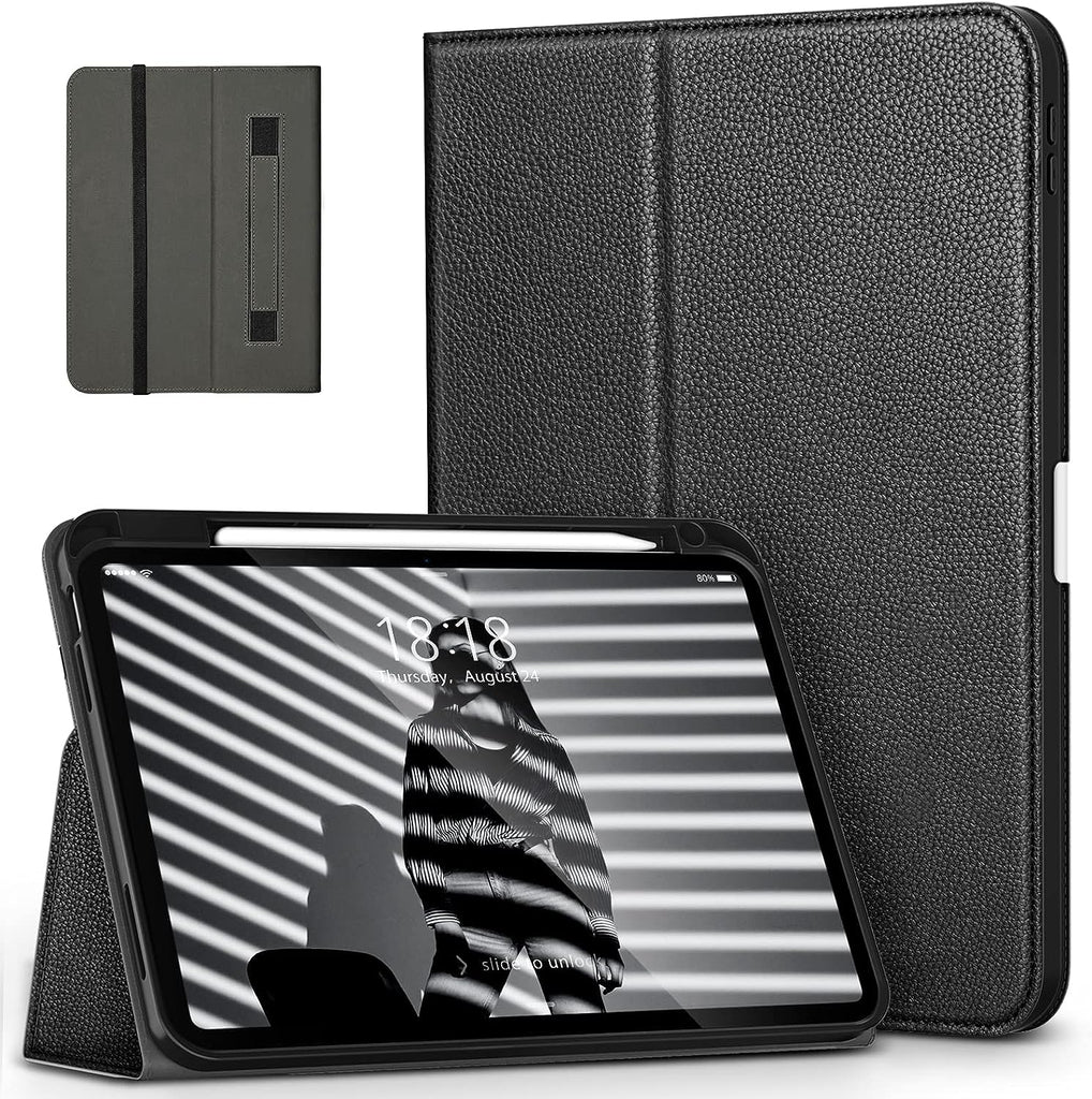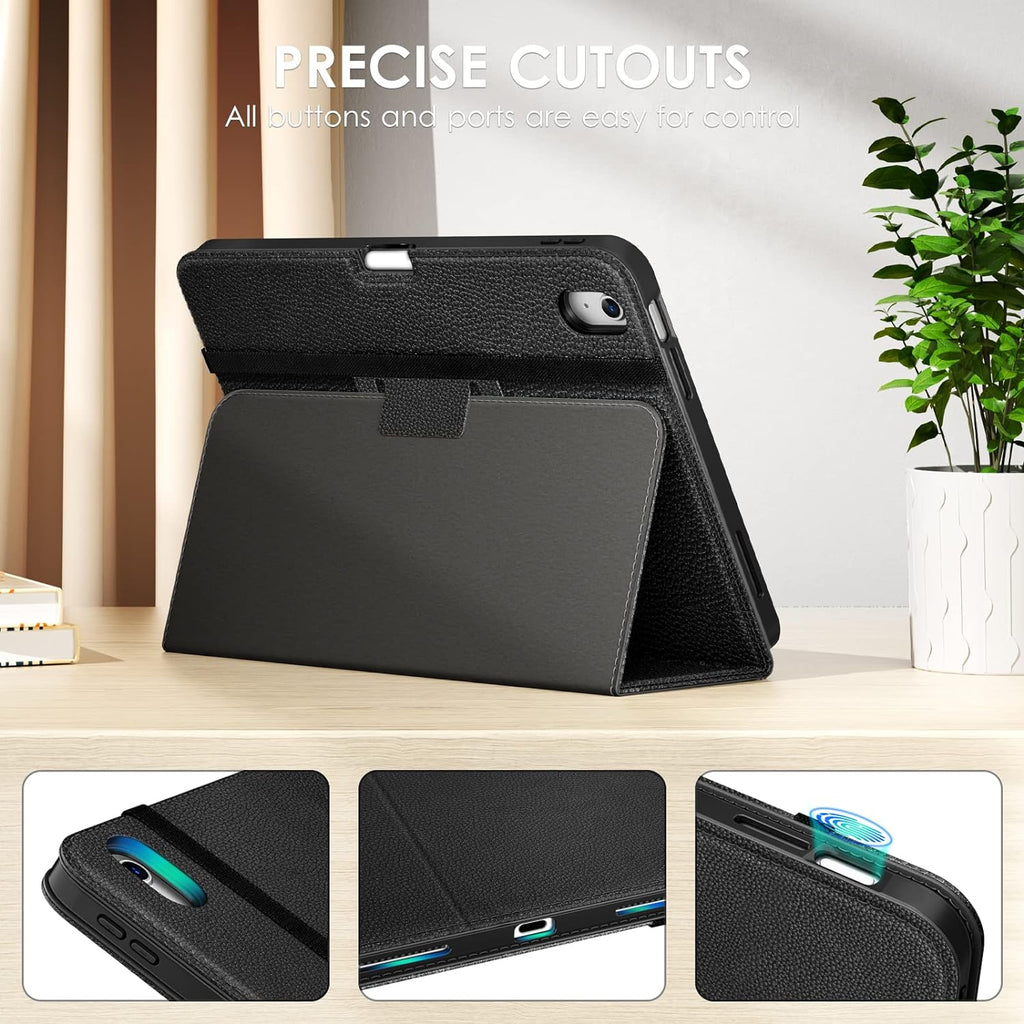 DTTO Folio Case for iPad 10th Generation - [Built-in Pencil Holder] Premium Vegan Leather Stand Folding Cover for iPad 10.9 Inch 2022, Auto Wake/Sleep, Black