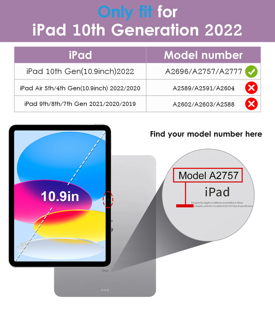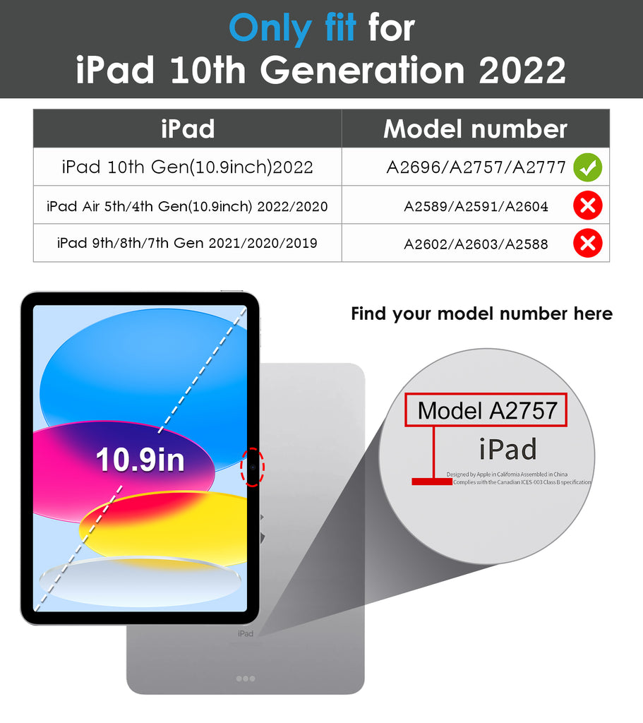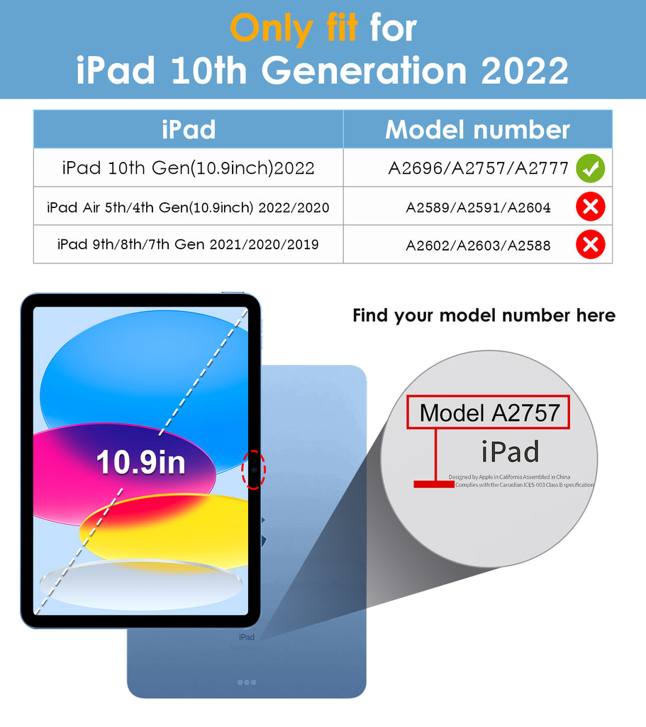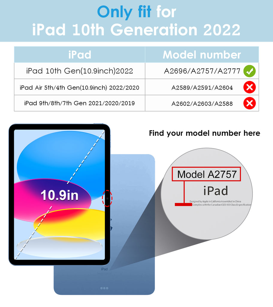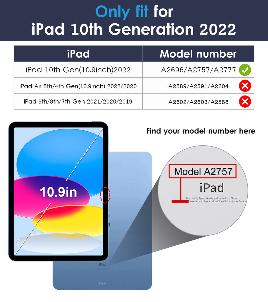 🌟【Compatibility】- Exclusively designed for iPad 10th Generation 10.9’’ 2022 Release. NOTE: Not compatible with any other devices. Please check your iPad on the back bottom to confirm the "AXXX" model number before purchasing (Model Number: A2757/A2777).    🌟【Upgrade Design】- Internal Honeycomb Grid Cushion release 80% more heat than other cases, extending your iPad lifespan. Microfiber lining, soft TPU back case to prevent daily drop, and screen scratch for your iPad 10th cover.    🌟【Multi-Function】- Support Touch ID. Pencil Holder conveniently places and easy push out your pencil via the hole in the back, Not easy to lose. NOTE: Apple pencils are not included.    🌟【Magnetic Smart Cover】- Built-in magnetic strip provides Auto Sleep/Wake features, and reduces battery drain. A magnetic tri-fold front case props up your device at stable angles to provide two positions for comfortable Viewing or Typing.    🌟【Lifetime Warranty】- DTTO Offers Lifetime Free Replacement for Your iPad 10th Generation case(Needs to be activated within 30 days of purchasing). Your Satisfaction is Our Top Concern.