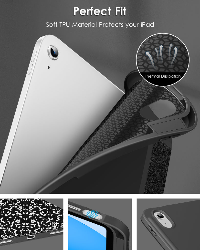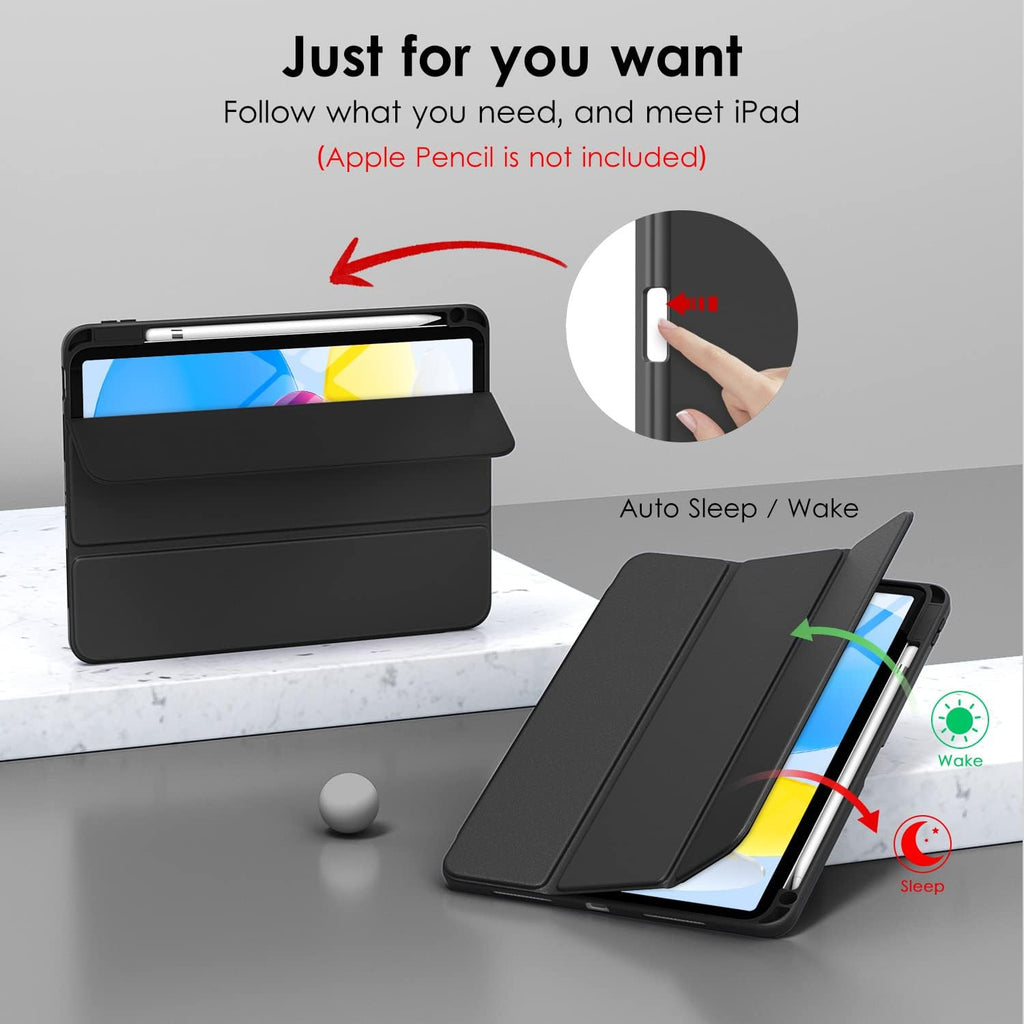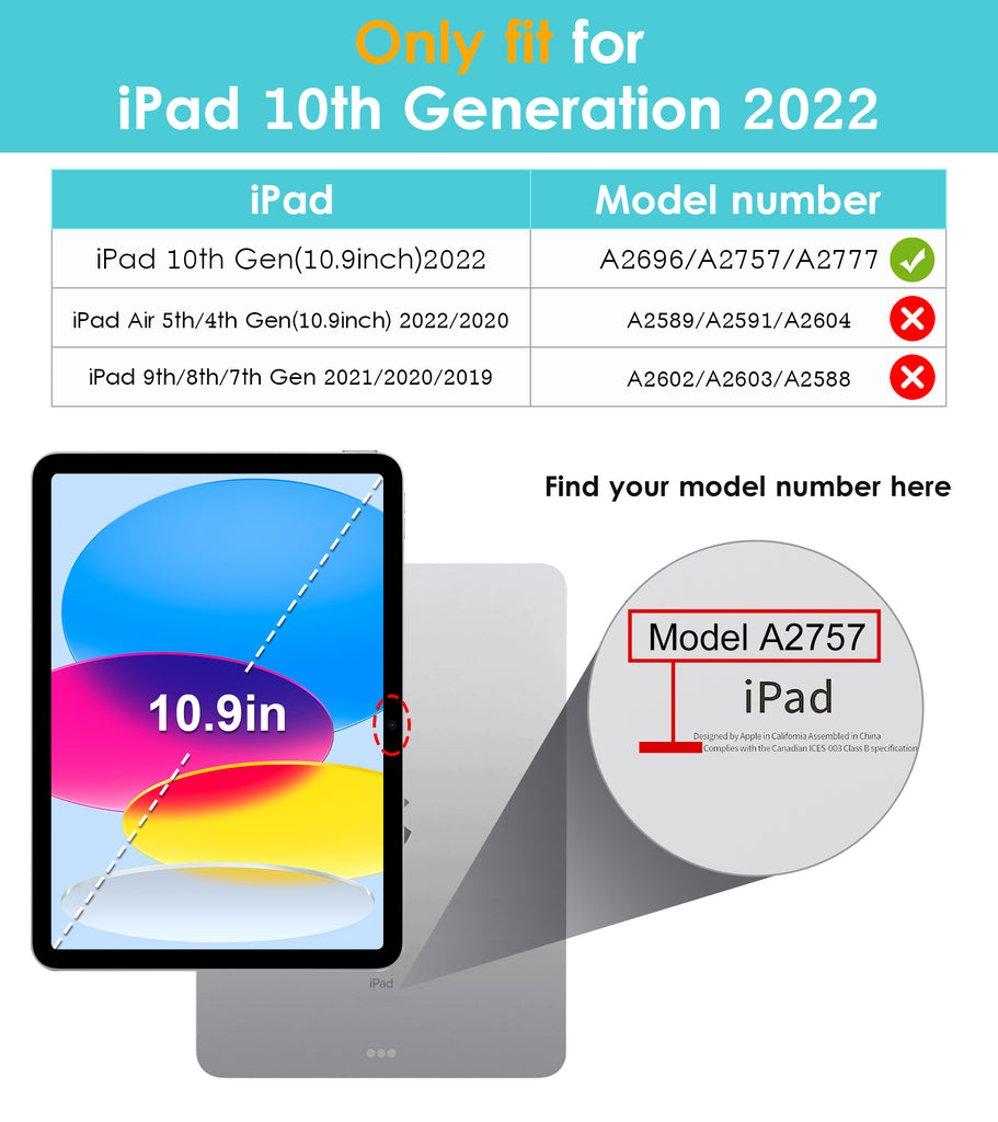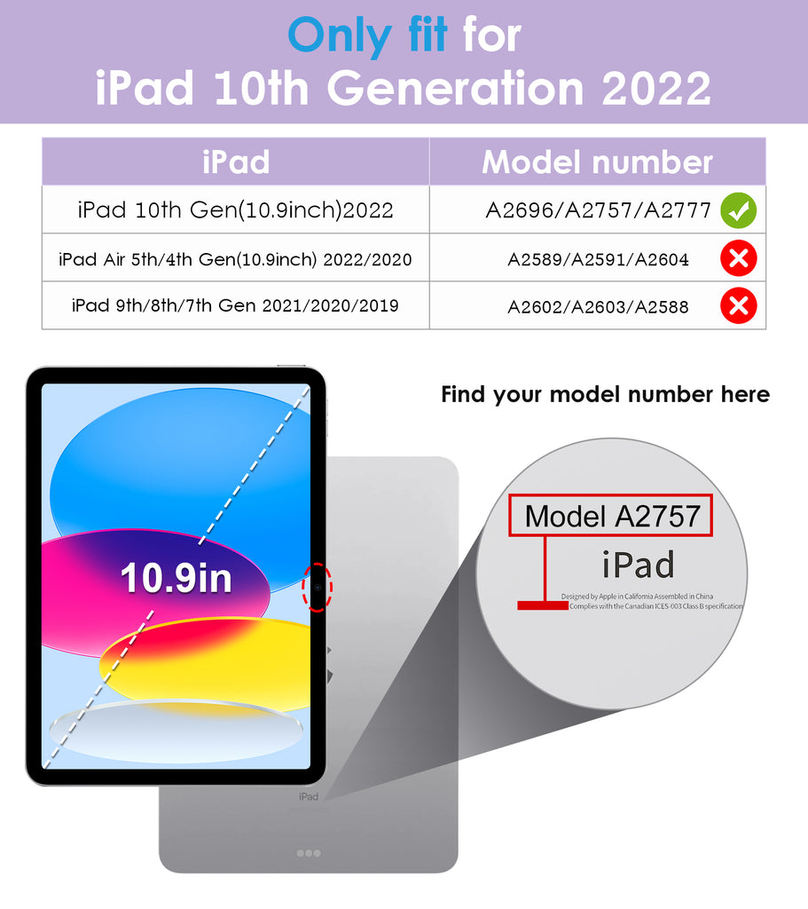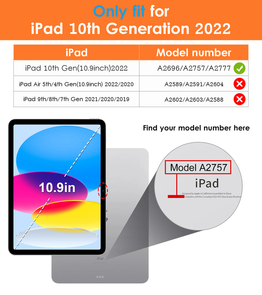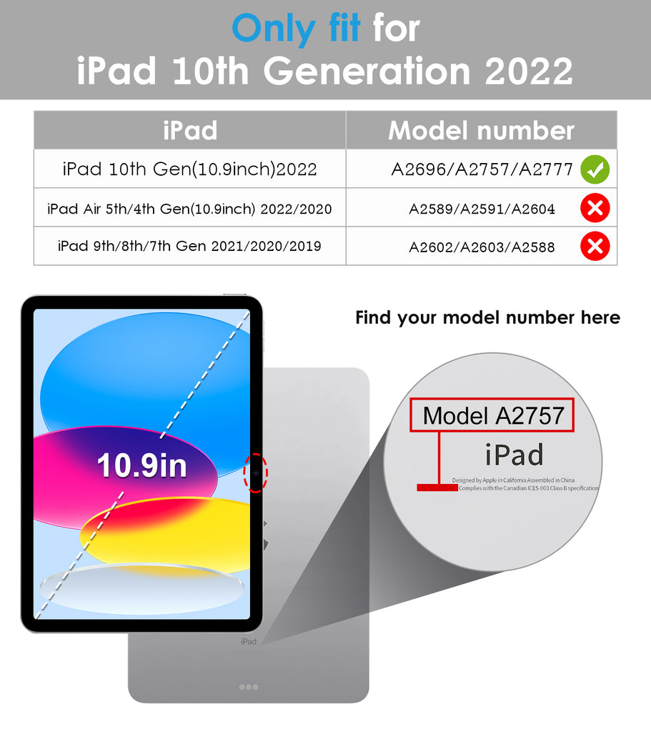 🌟【Compatibility】- Exclusively designed for iPad 10th Generation 10.9’’ 2022 Release. NOTE: Not compatible with any other devices. Please check your iPad on the back bottom to confirm the "AXXX" model number before purchasing (Model Number: A2757/A2777).    🌟【Upgrade Design】- Internal Honeycomb Grid Cushion release 80% more heat than other cases, extending your iPad lifespan. Microfiber lining, soft TPU back case to prevent daily drop, and screen scratch for your iPad 10th cover.    🌟【Multi-Function】- Support Touch ID. Pencil Holder conveniently places and easy push out your pencil via the hole in the back, Not easy to lose. NOTE: Apple pencils are not included.    🌟【Magnetic Smart Cover】- Built-in magnetic strip provides Auto Sleep/Wake features, and reduces battery drain. A magnetic tri-fold front case props up your device at stable angles to provide two positions for comfortable Viewing or Typing.    🌟【Lifetime Warranty】- DTTO Offers Lifetime Free Replacement for Your iPad 10th Generation case(Needs to be activated within 30 days of purchasing). Your Satisfaction is Our Top Concern.