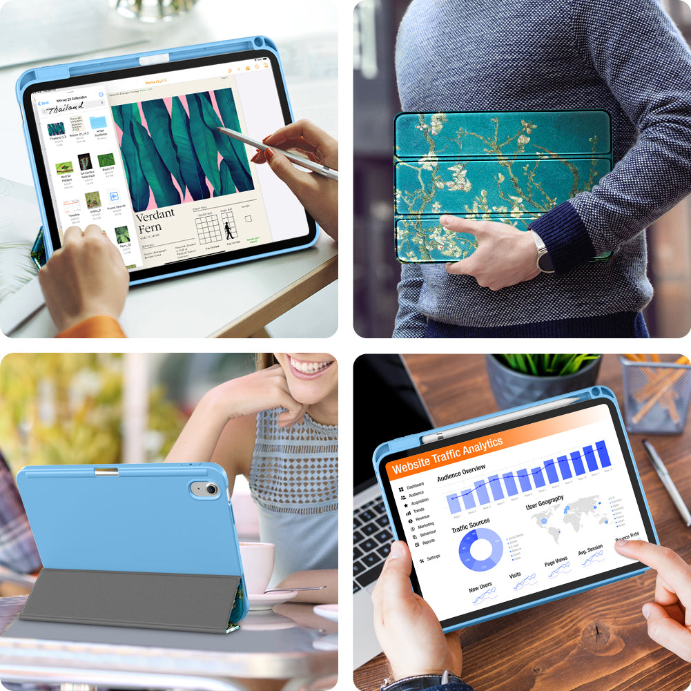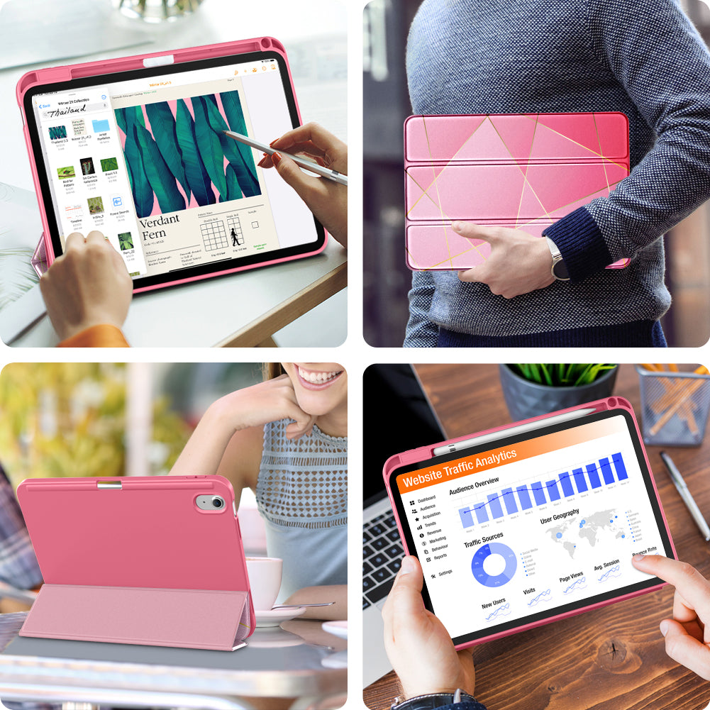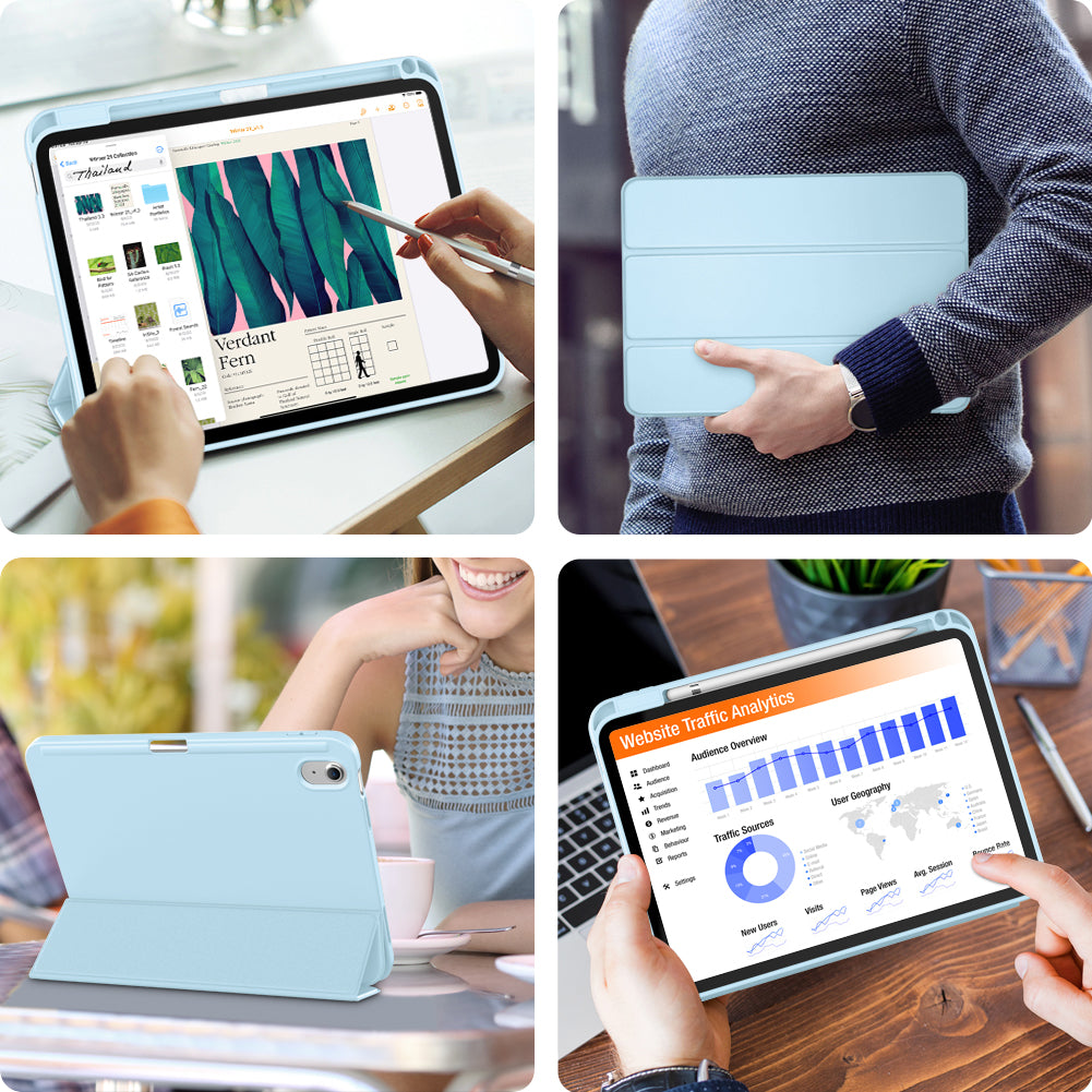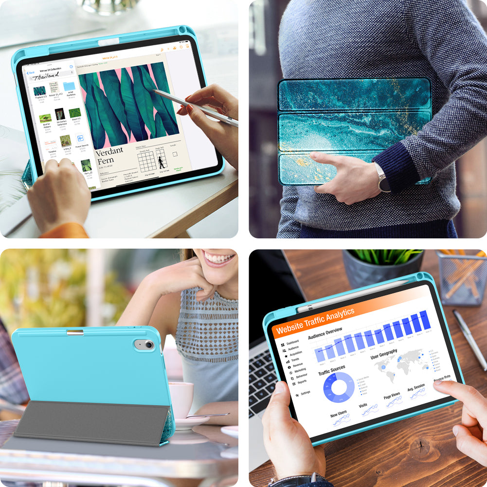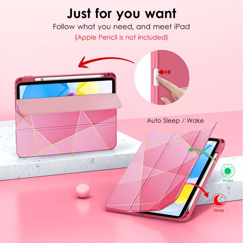 🌟【Compatibility】- Exclusively designed for iPad 10th Generation 10.9’’ 2022 Release. NOTE: Not compatible with any other devices. Please check your iPad on the back bottom to confirm the "AXXX" model number before purchasing (Model Number: A2757/A2777).    🌟【Upgrade Design】- Internal Honeycomb Grid Cushion release 80% more heat than other cases, extending your iPad lifespan. Microfiber lining, soft TPU back case to prevent daily drop, and screen scratch for your iPad 10th cover.    🌟【Multi-Function】- Support Touch ID. Pencil Holder conveniently places and easy push out your pencil via the hole in the back, Not easy to lose. NOTE: Apple pencils are not included.    🌟【Magnetic Smart Cover】- Built-in magnetic strip provides Auto Sleep/Wake features, and reduces battery drain. A magnetic tri-fold front case props up your device at stable angles to provide two positions for comfortable Viewing or Typing.    🌟【Lifetime Warranty】- DTTO Offers Lifetime Free Replacement for Your iPad 10th Generation case(Needs to be activated within 30 days of purchasing). Your Satisfaction is Our Top Concern.