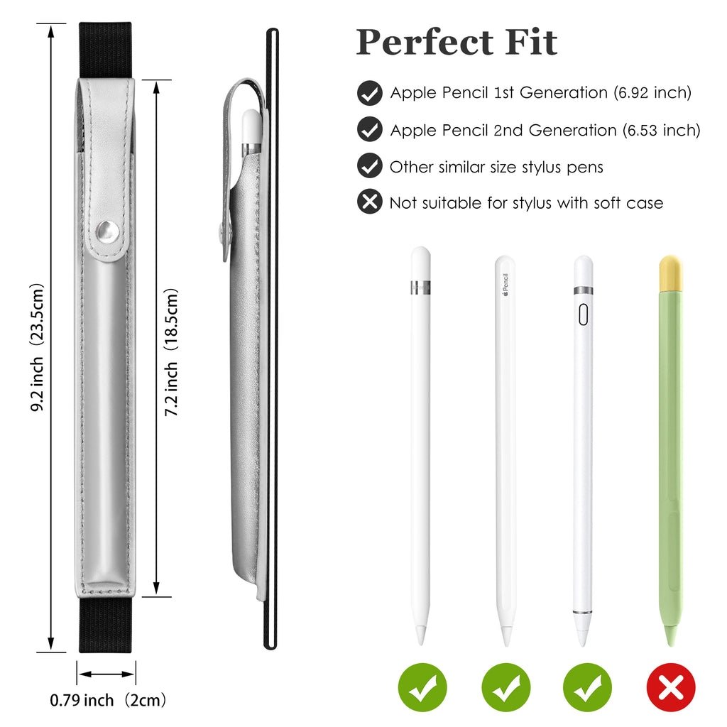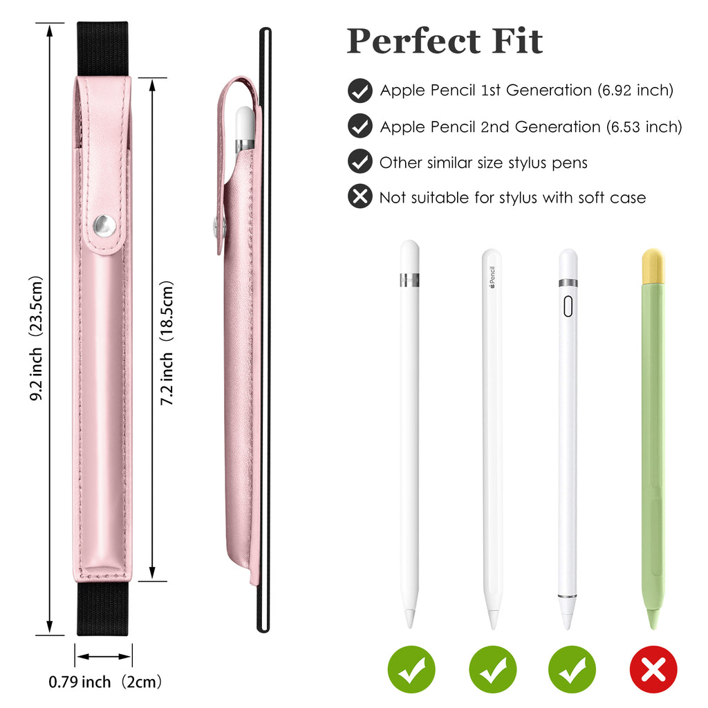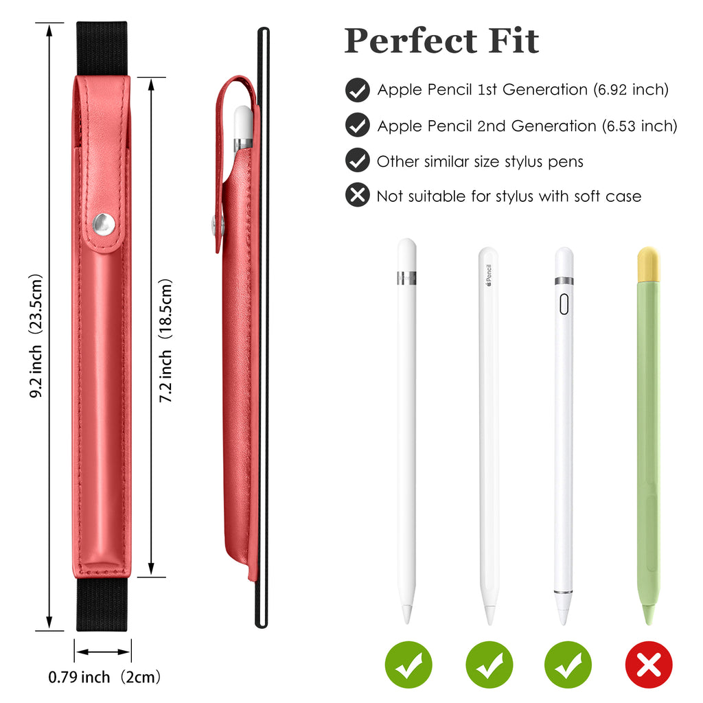 【 Compatibly 】 Size 7x0.43x0.39 inches ( Length, width and height ) perfectly designed for Apple Pencil 1st/2nd generation, compatible with iPad 10th generation 10.9 inch, iPad 9th/8th/7th generation 10.2 inch, iPad Air 5th/4th generation 10.9 inch, iPad Pro 11/ 12.9 inch, iPad 9.7 inch case. Note: Apple Pencil is for illustration only and not included. 【 Protection 】 Made of premium PU leather and metal button, exquisite craft makes sure that the pencil case will provide a full protection for your pencil away from water, scratch, drop, dust and so on while carry the pen in daily life. The inner layer is wrapped with soft cloth, will not scratch your stylus. The outer leather is wear-resistant and easy to clean. 【 Convenience 】 With large elasticity detachable elastic band, easy to install and remove the pencil holder from your iPad case. And it ensures that the pen case will not fall from your iPad case due to squeezing and bumping. 【 Design 】 Solid color minimalist design, Compact and lightweight. Easily match the iPad case in a variety of colors. The tapered opening design of the holder case makes it easier for you to open it and take out the stylus. 【 After-Sale 】 If you have any issue, please contact us, we will get back to you in 24 hours and give you a satisfactory solution. Thank you so much for your support!