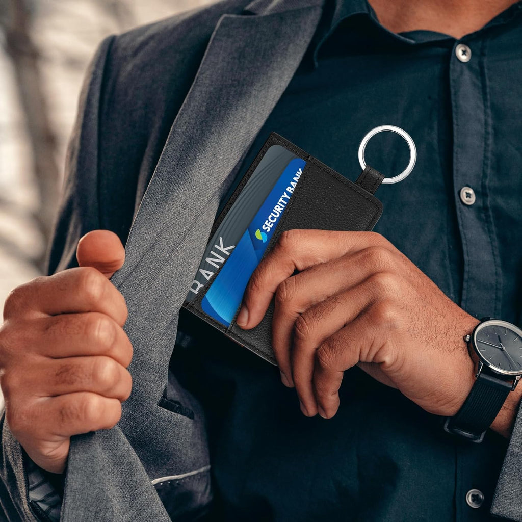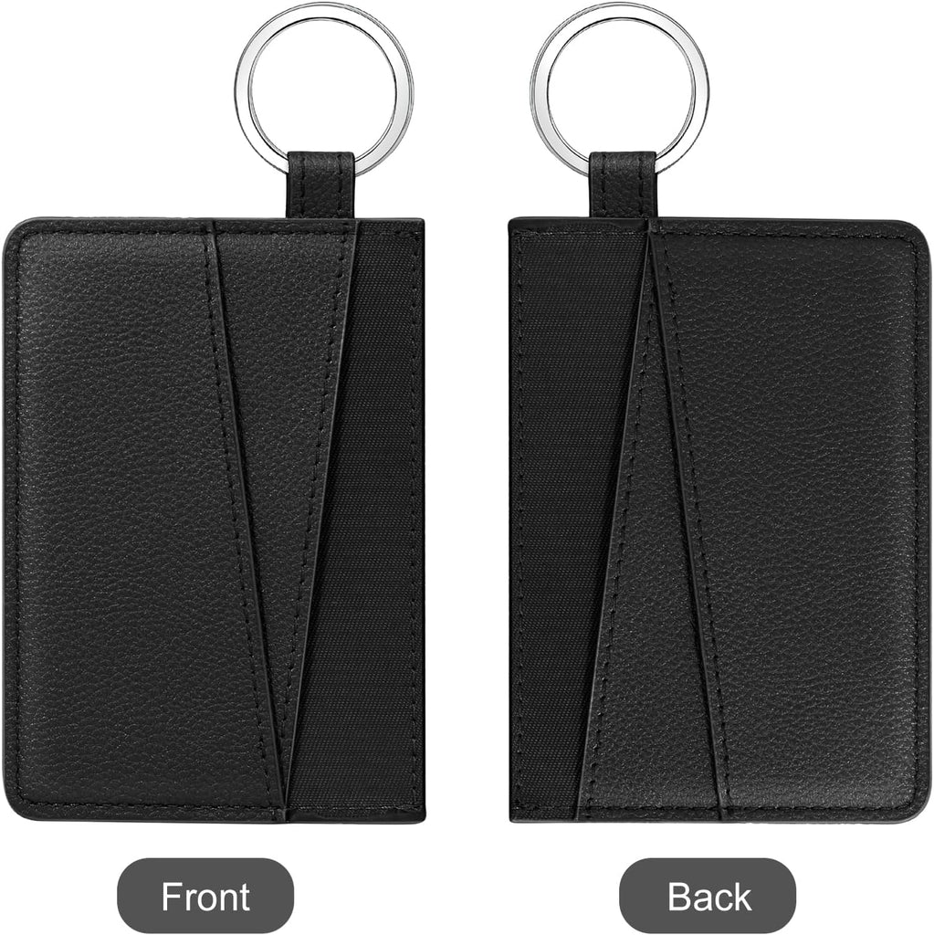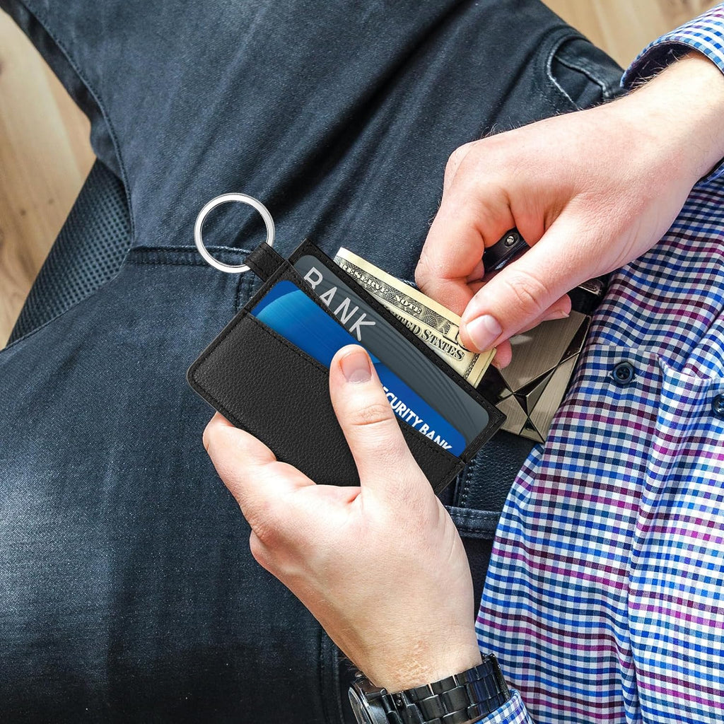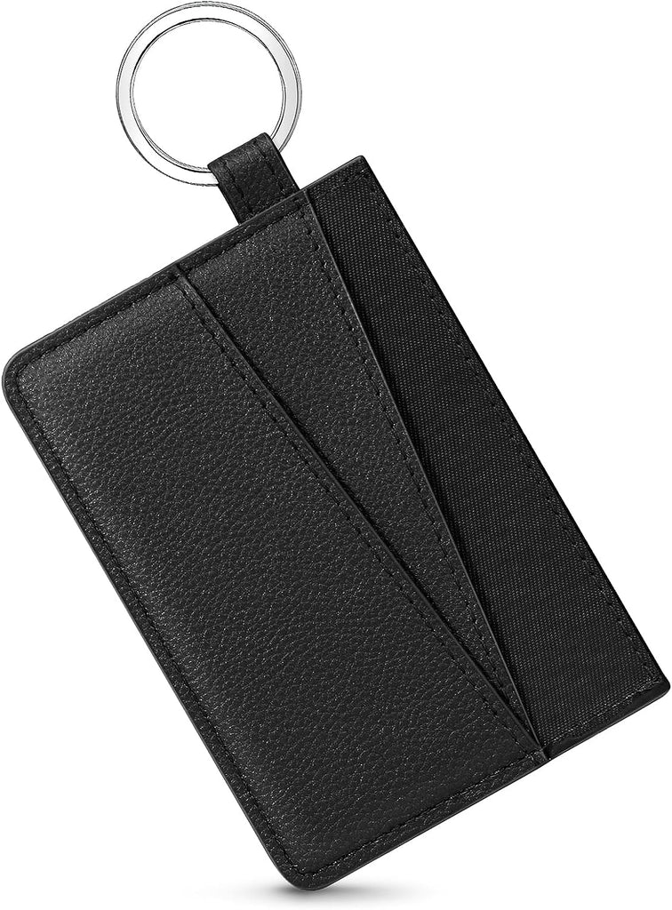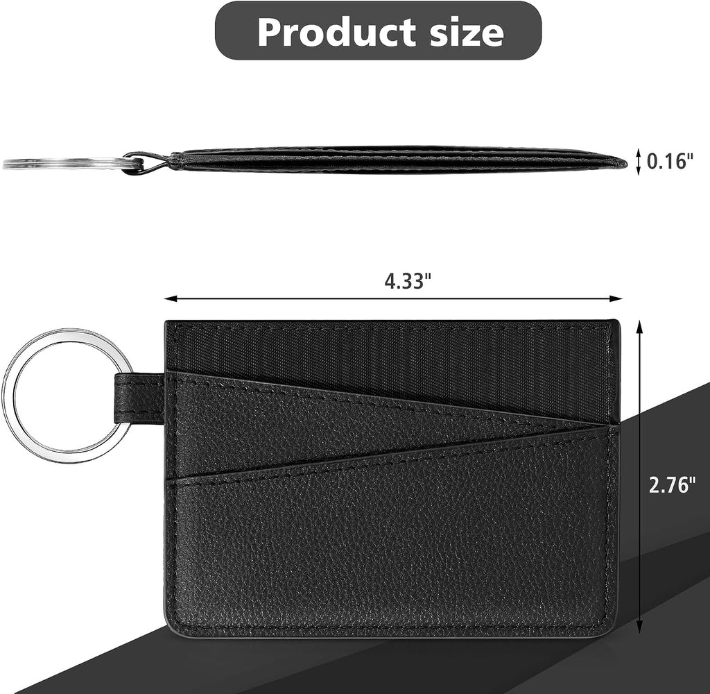 DTTO Slim Card Holder Wallet for Men & Women, Minimalist PU Leather Front Pocket Credit Card Case with Keychain Ring, Black