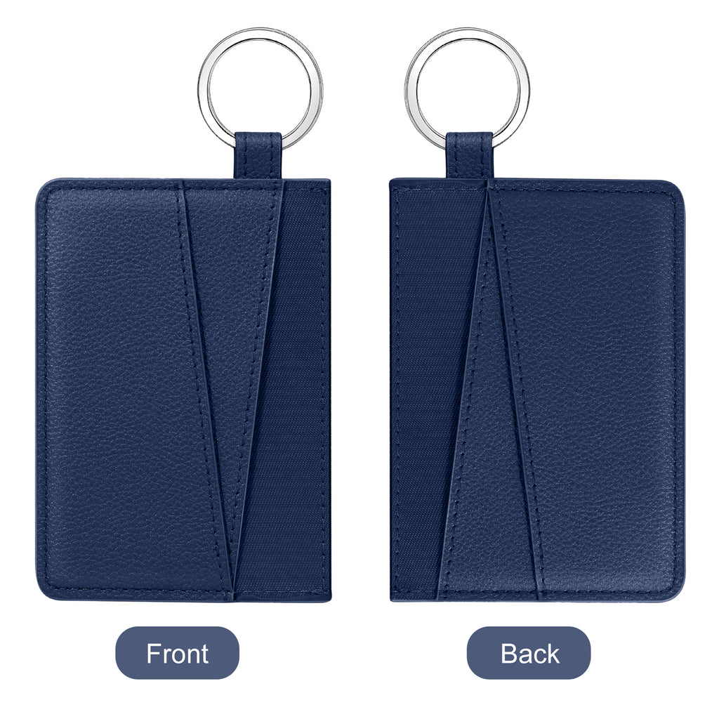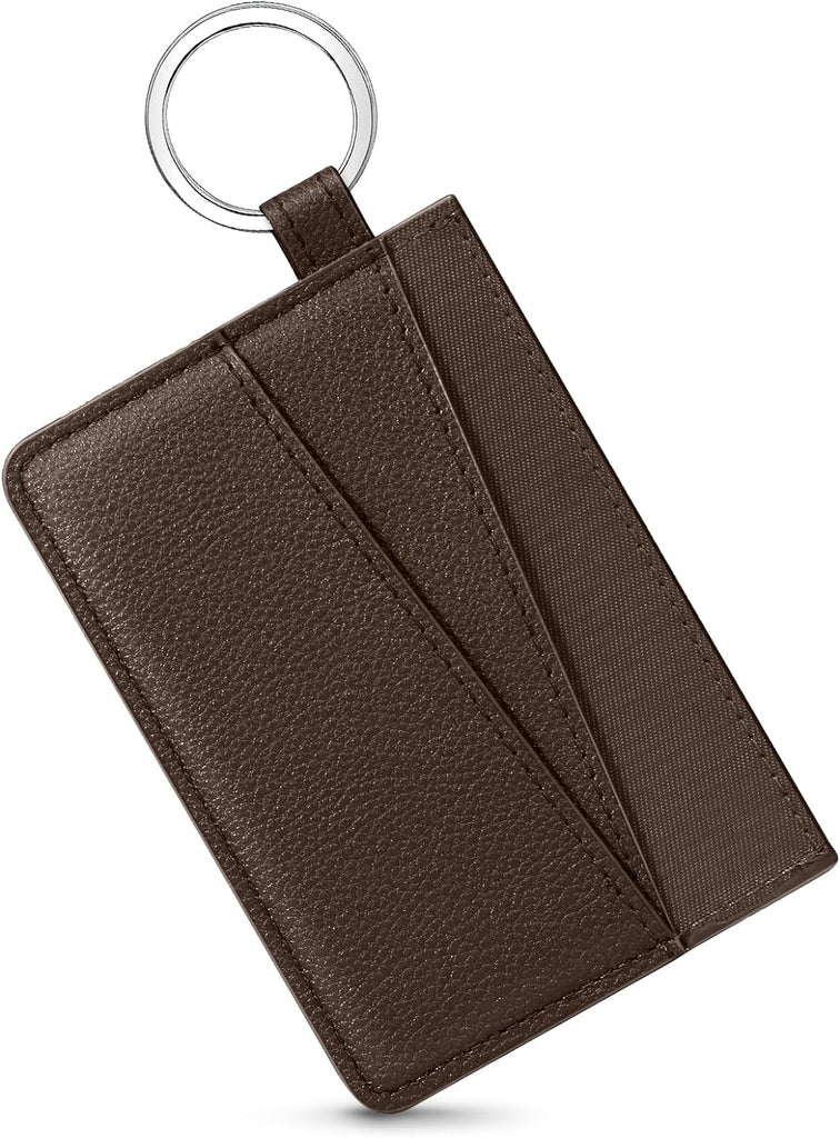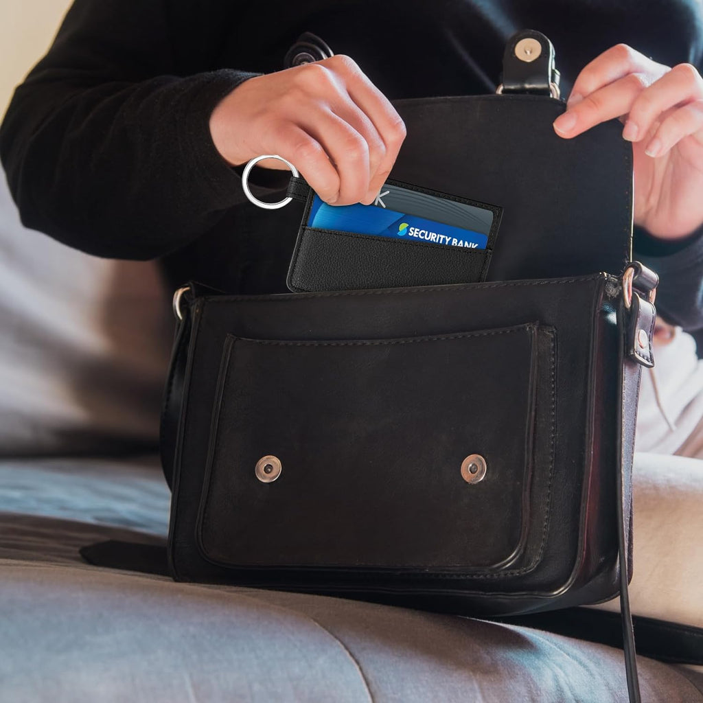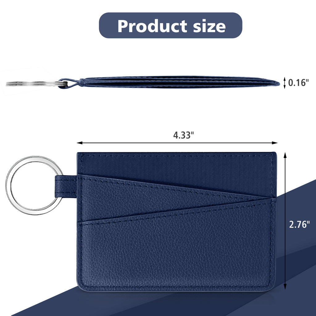DTTO Slim Card Holder Wallet for Men & Women, Minimalist PU Leather Front Pocket Credit Card Case with Keychain Ring, Black