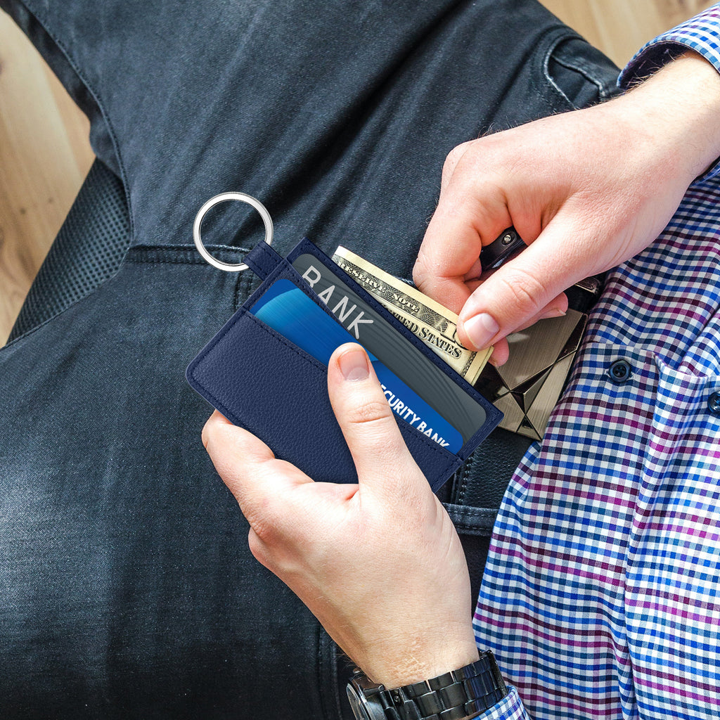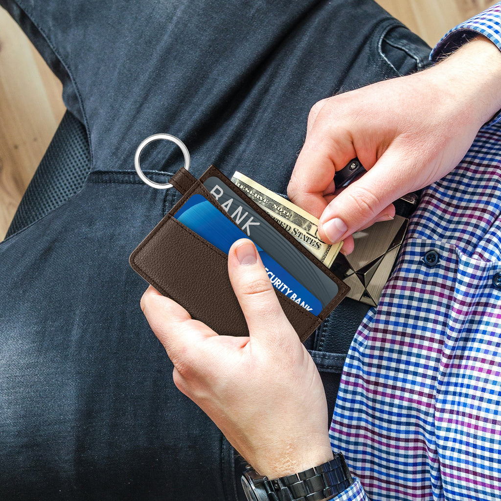 • 【 Durable Materials 】Each Slim Wallet is made of wear-resistant PU leather and Oxford cloth, easy to face frequent use. Attached to the top of the wallet, we have a detachable metal ring where you can conveniently attach it with your keys, bags, or others.