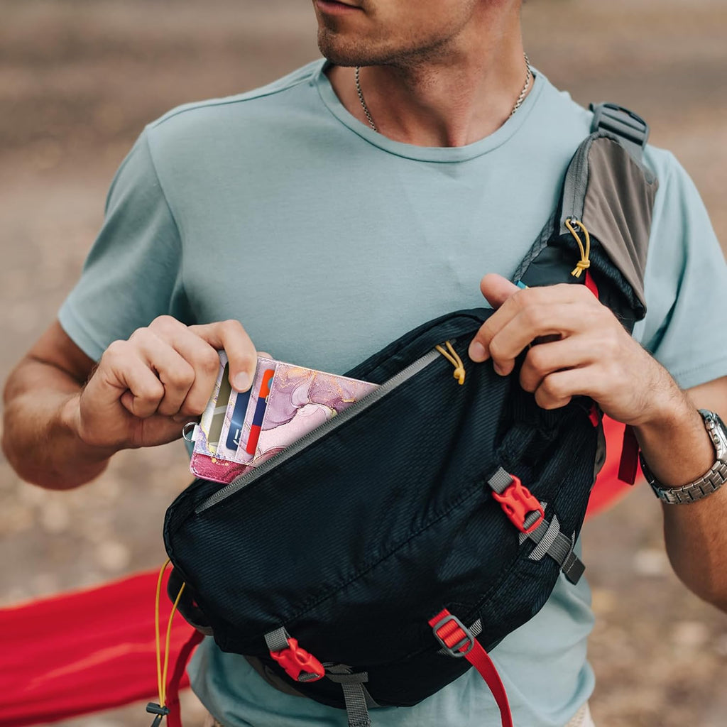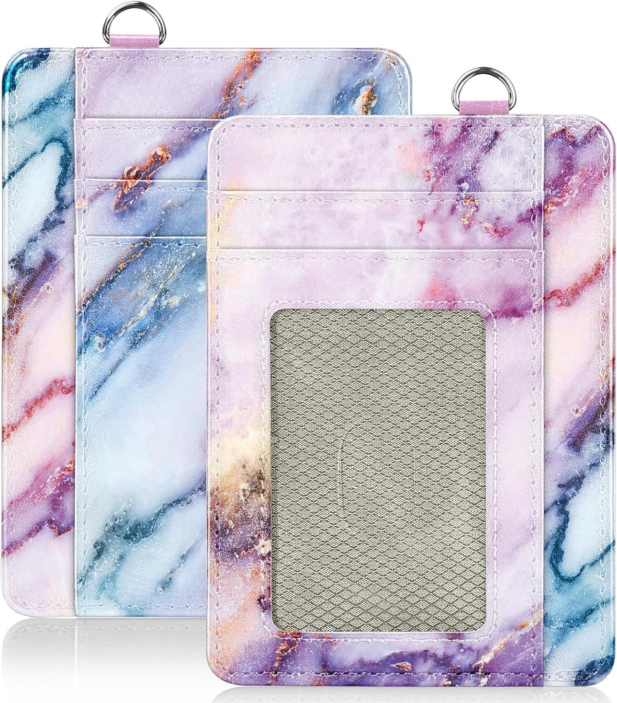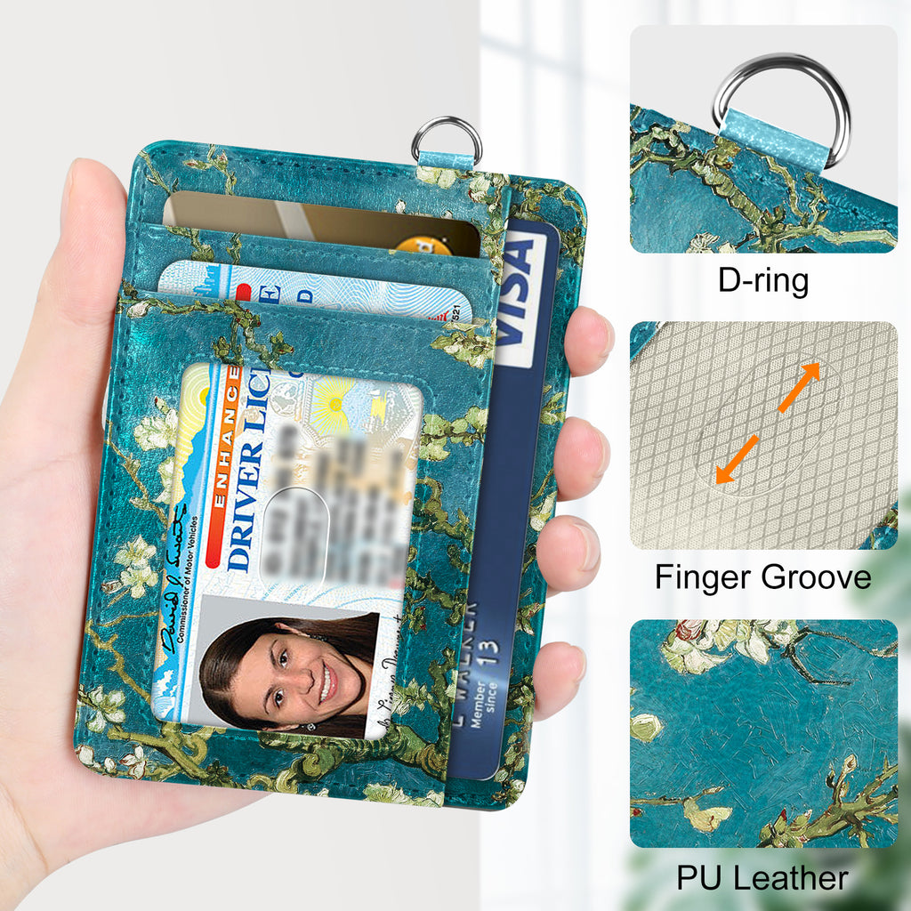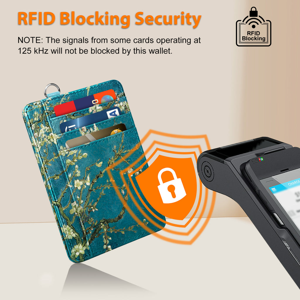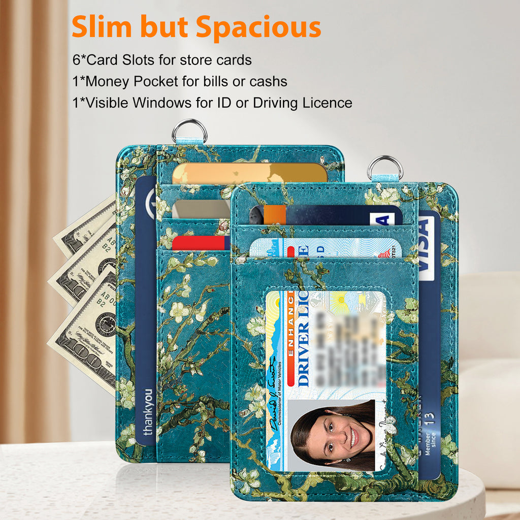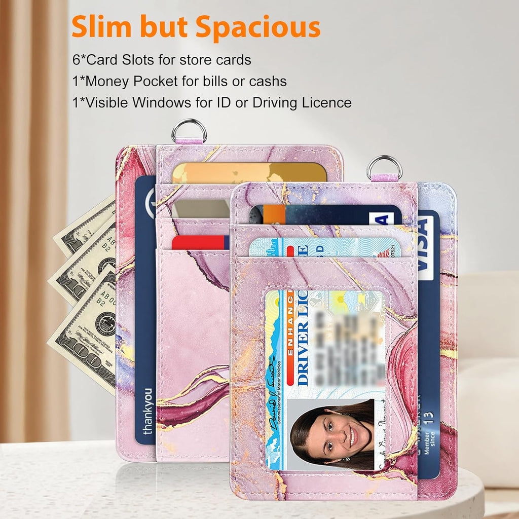 Durable Materials: Each ultra-thin ID card bag is made of durable PU leather with a non-slip canvas lining to prevent the card from dropping. With a D-ring, you can hang this minimalist card bag anywhere. Customized card slots for each credit card ensure that the cards are easy to reach and do not fall out.      Wide Application: Measuring only 4.53*3.15*0.32 inches, the slim wallet can hold up to 7 cards, a small amount of cash, and 1 transparent window designed for an ID card or driver's license. The whole card case is compact and lightweight, suitable for pockets, handbag and backpacks. Bring safety and convenience to your life and travel.      RFID Security: This RFID wallet card case uses RFID-blocking material to protect your card information from being scanned by unauthorized machines. Protect your privacy when traveling or shopping.      Perfect Gift: Classic appearance and color, functional and unisex design, whether it is for boyfriend, girlfriend, family, colleagues, or children are very suitable.      100% After-Sale: If you have any issue, please contact us, we will get back to you in 24 hours and give you a satisfactory solution. Thank you so much for your support!