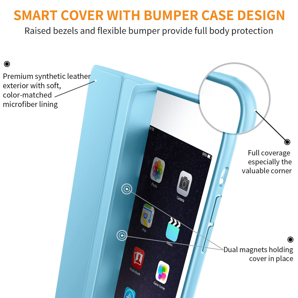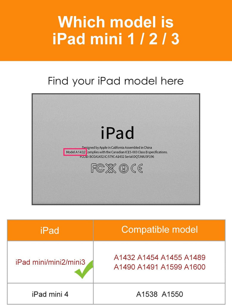 Ultra slim and lightweight case designed specifically for Apple iPad Mini 1/2/3 ALL models. Please Note: NOT fit for iPad Mini 5 2019 and iPad mini 4. Premium synthetic leather exterior and soft, color-matched microfiber lining with soft flexible TPU back cover. Smooth TPU material feels great and leaves no fingerprint nor scratch. Tri-fold front cover with dual standing positions for facetime, movie viewing and keyboard typing. Magnetic smart cover supports fast response auto sleep/wake function. Air cushion technology and honeycomb pattern provide better shock absorb function and better thermal dissipation.With soft flexible TPU back, you'll never worry about leaving scratches on your precious iPad. Precise cut-outs and openings for Apple iPad Mini 1 (2012), iPad Mini 2 (2013), iPad Mini 3 (2014) with easy access to all tablet features. Easy to install and remove. Lifetime warranty offered by DTTO. Please search "DTTO" for other accessories.