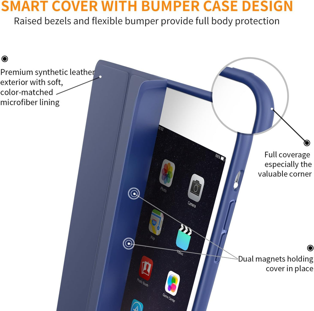 iPad Mini Case for iPad Mini 3/2 / 1, DTTO Ultra Slim Lightweight Smart Case Trifold Cover Stand with Flexible Soft TPU Back Cover for iPad Apple Mini, Mini 2, Mini 3 [Auto Sleep/Wake],NavyBlue