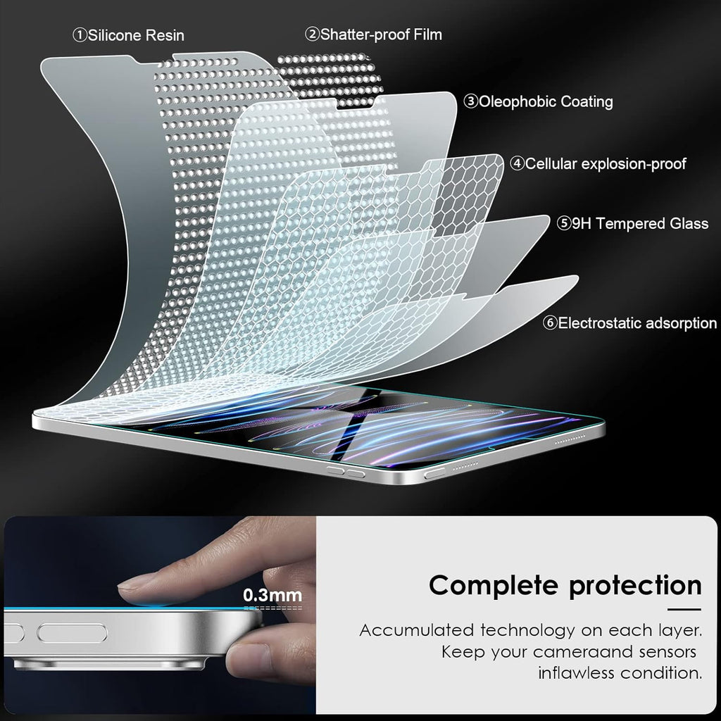 ⚠【Custom-tailored】 1 Pack quality tempered glass screen protector exclusively designed for iPad Pro 11 inch 1st/2nd/3rd/4th Gen Model:A1980/A2013/A1934/A1979/A2228/A2068/A2230/A2231/A2459/A2301/A2460/A2759/A2435/A2761/A2762(2018/2020/2021 release),and 10.9 inch iPad Air 5th/4th Gen Model:A2588/A2589/A2591/A2316/A2324/A2325(2022/2020 release),; Please check the model number at the back of your iPad before purchase (NOT compatible with any other iPad models) 👑【Ultra-protective】This screen protector combines the tempered glass material commonly used in construction with Tora-CRC reinforcement technology for optimal protection. The SGS-certified with military grade protection (MIL-STD-810H) for superior resistance to damage caused by scratches, bumps, and drops in daily use. 👑【HD Clear Guard】AR coating technology increases the transmittance of the glass, providing maximum optical clarity. The ultra-clear ensures comfortable extended use without causing eye strain. And with full coverage design, you can't even see it. You'll know when you get your hands on it. Experience the original true-tone display. 👑【Original Touch】The smooth glass material feels like the original iPad screen, allowing it to respond accurately to every touch and movement. And the top acephobic layer effectively reduces fingerprints and smudges by 95% for a truly flawless touchscreen experience. 💯【Worry-Free Warranty】 Your order comes with 30-Day refund and 365-Day Warranty. Stay relaxed when the unexpected happens (wrong size, shipping problem, wear and tear…), simply contact us to get your exclusive customer service.